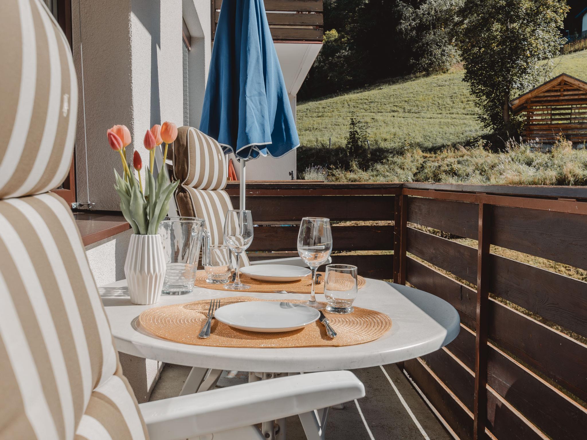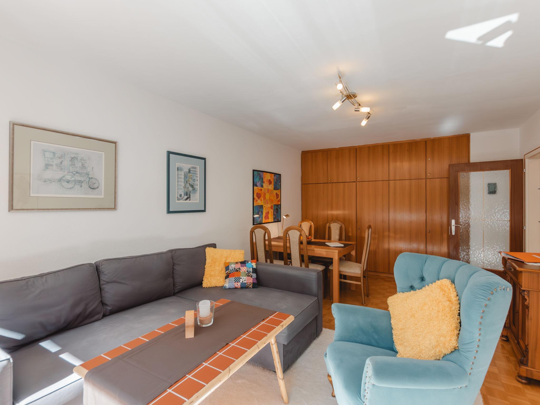 "Murmeltier", 2-room apartment 47 m2 on 2nd floor. Bright, very tasteful furnishings: entrance hall. Living/sleeping room with 1 double sofabed, dining table and cable TV (flat screen). Exit to the balcony. 1 double bedroom with 1 double bed (160 cm, length 200 cm). Small kitchen (2 hot plates, toaster, kettle, microwave, electric coffee machine, Capsules for coffee machine (Nespresso) extra). Bath/WC. Wooden floors. Balcony 6 m2. Balcony furniture. Very beautiful view of the mountains. Please note: suitable for families. Smoke alarm. 50403-000468-2022
