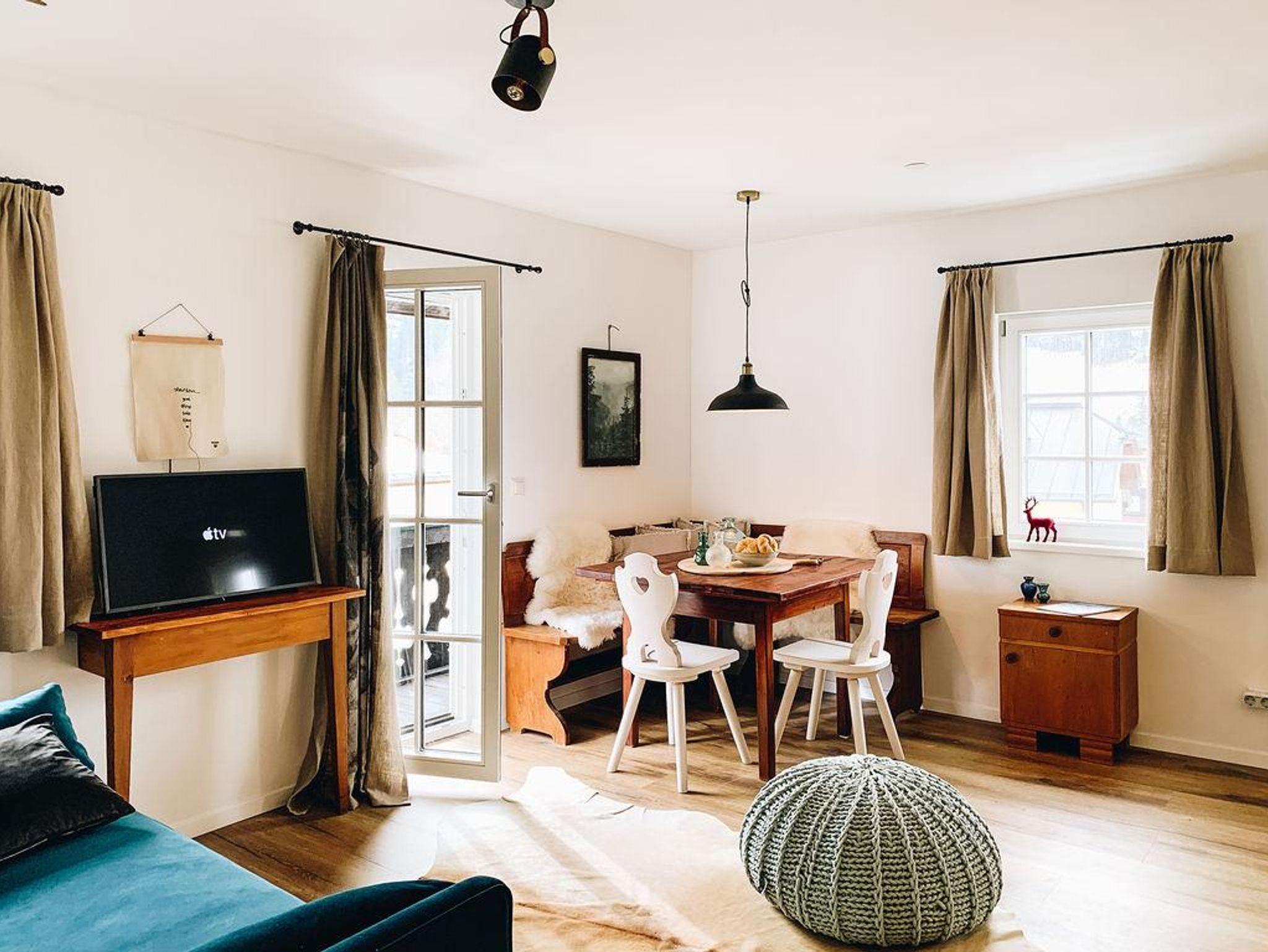 Drei Zimmer-Wohnung. Wohnzimmer die durch eine rustikale Schiebetür von der Wohnküche getrennt werden kann. Balkone and der Ache.