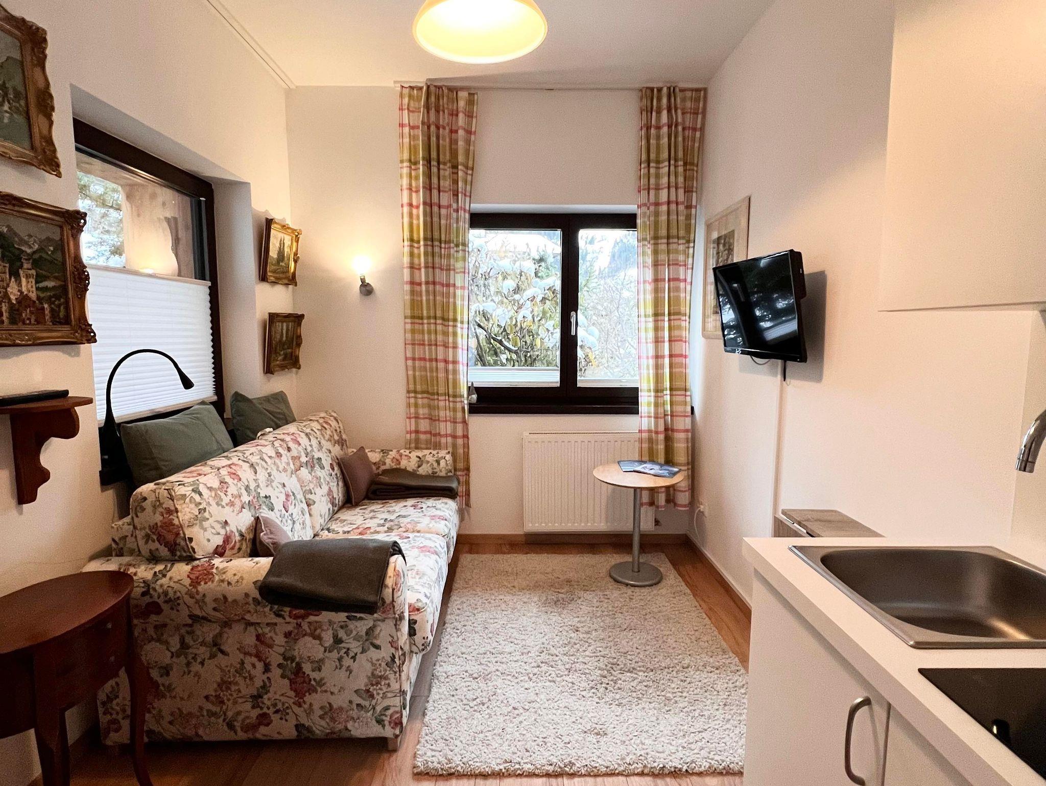 Das kleine helle kuschelige Appartement für 1-2 Personen mit Blick in den Garten und auf die Berge hat alles was man für einen perfekten Urlaub benötigt. Das Sofa wird im Handumdrehen zu einem bequemen Bett mit Ferderkernmatratze (1,40 m x 2,00 m, offenes Fußende), in der Pantryküche könnt ihr euer Essen zubereiten oder einfach nur den Kaffee genießen. Euer großes Bad mit Fenster liegt dem Appartement direkt gegenüber. Es gibt einen begehbaren Kleiderschrank mit vielen Staufächern und Gardrobe. Zusätzlich gibt es einen Skistall im Haus. Euer Appartenemt liegt im Erdgeschoss.