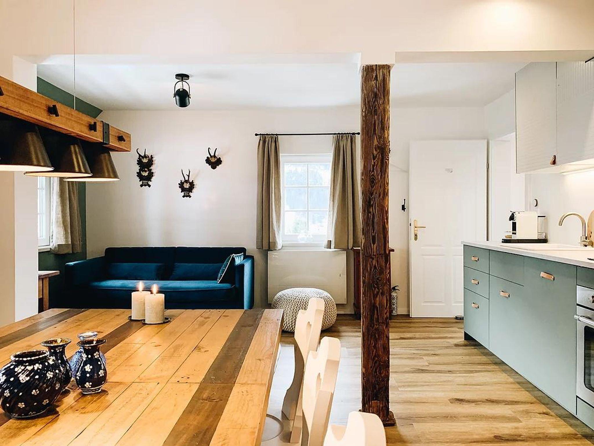Drei-Zimmer-Wohnung. Voll ausgestattete Küche. Südbalkon mit Blick auf Bad Gastein.