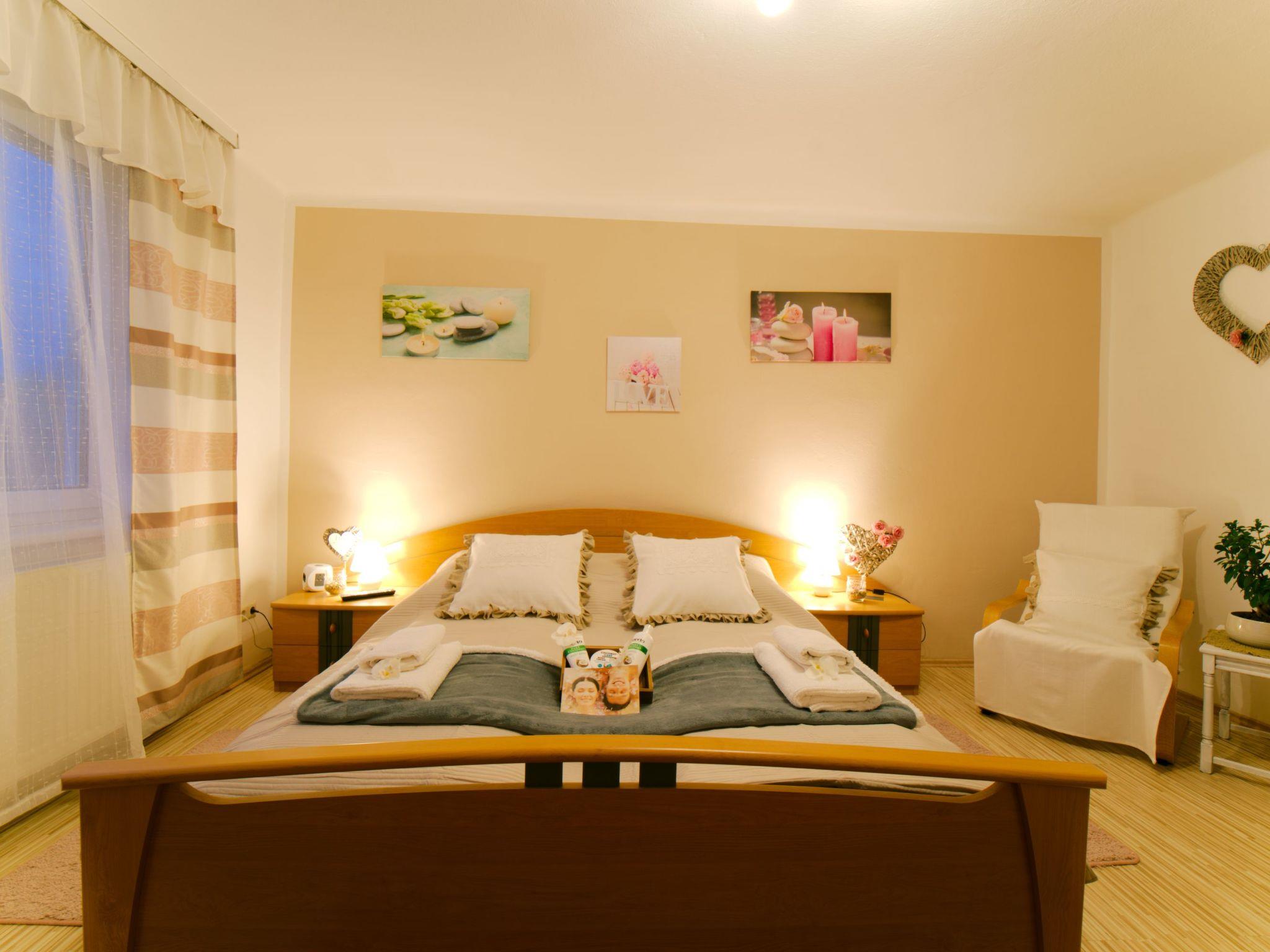The ANDA holiday flat has its own entrance. A staircase leads to the first floor where you can use the two rooms, kitchen, toilet, bathroom, balcony and terrace without being disturbed. Our beautiful holiday flat offers: two very cosy bedrooms with double bed, flat screen TV, satellite TV, kitchenette with sink, fridge, microwave, cooker, toaster, coffee machine, kettle, terrace (8m²) and balcony (3m²), bathroom with bathtub and shower with free care products, bed linen, towels, bath towels are provided, WLAN and parking free of charge.