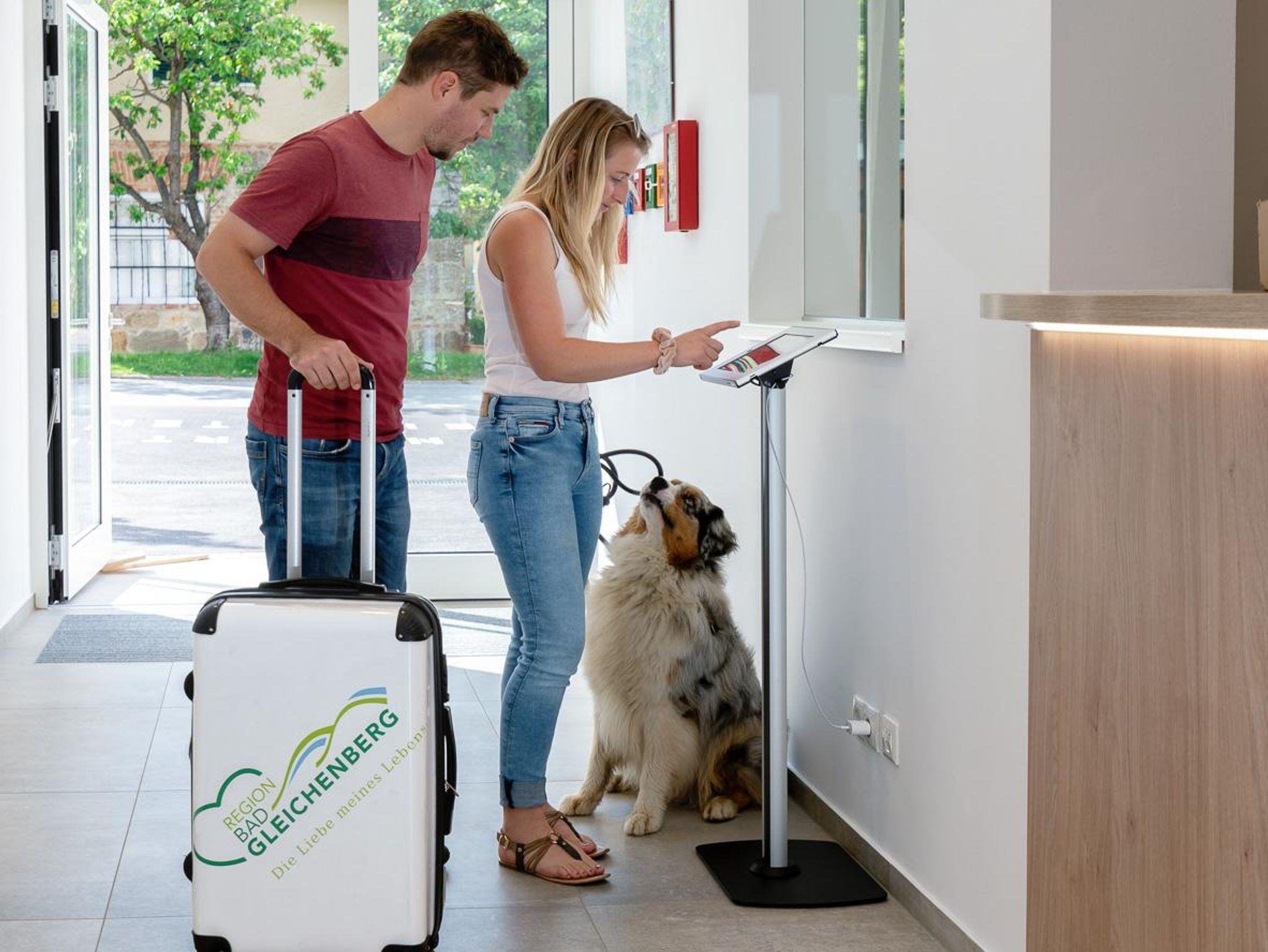 Nach dem inkludierten Frühstück mit regionalen Produkten ist damit alles für die Selbstverpflegung vorbereitet. Bei der Buchung wird ein Zimmer mit geschichtsträchtigen Namen zugewiesen – man darf gespannt sein, ob man bei Erzherzogin Elisabeth, bei Kaiser Franz Josef oder bei Prinzessin Luise einziehen darf. Direkt vor dem Haus gibt es einen Parkplatz für die Urlaubsgäste, sowie einen versperrbaren Fahrradkeller. Der Pool inklusive Sonnenterrasse ist nach Südwesten ausgerichtet, dem Vergnügen der Nachmittagssonne steht damit nichts im Wege. Wer keine Lust zum Kochen hat, hat die Qual der Wahl von zahlreichen Gastronomiebetrieben – vom Buschenschank bis zur Haubenküche. Die Lage und Größe des Landhaus Bad Gleichenberg bieten auch den perfekten Aufenthalt für den Urlaubsgenuss mit Hunden. Die Anreise bzw. der Check in kann sehr flexibel gestaltet werden, ein digitaler Self-Check in ist täglich bis 23.59 Uhr möglich.