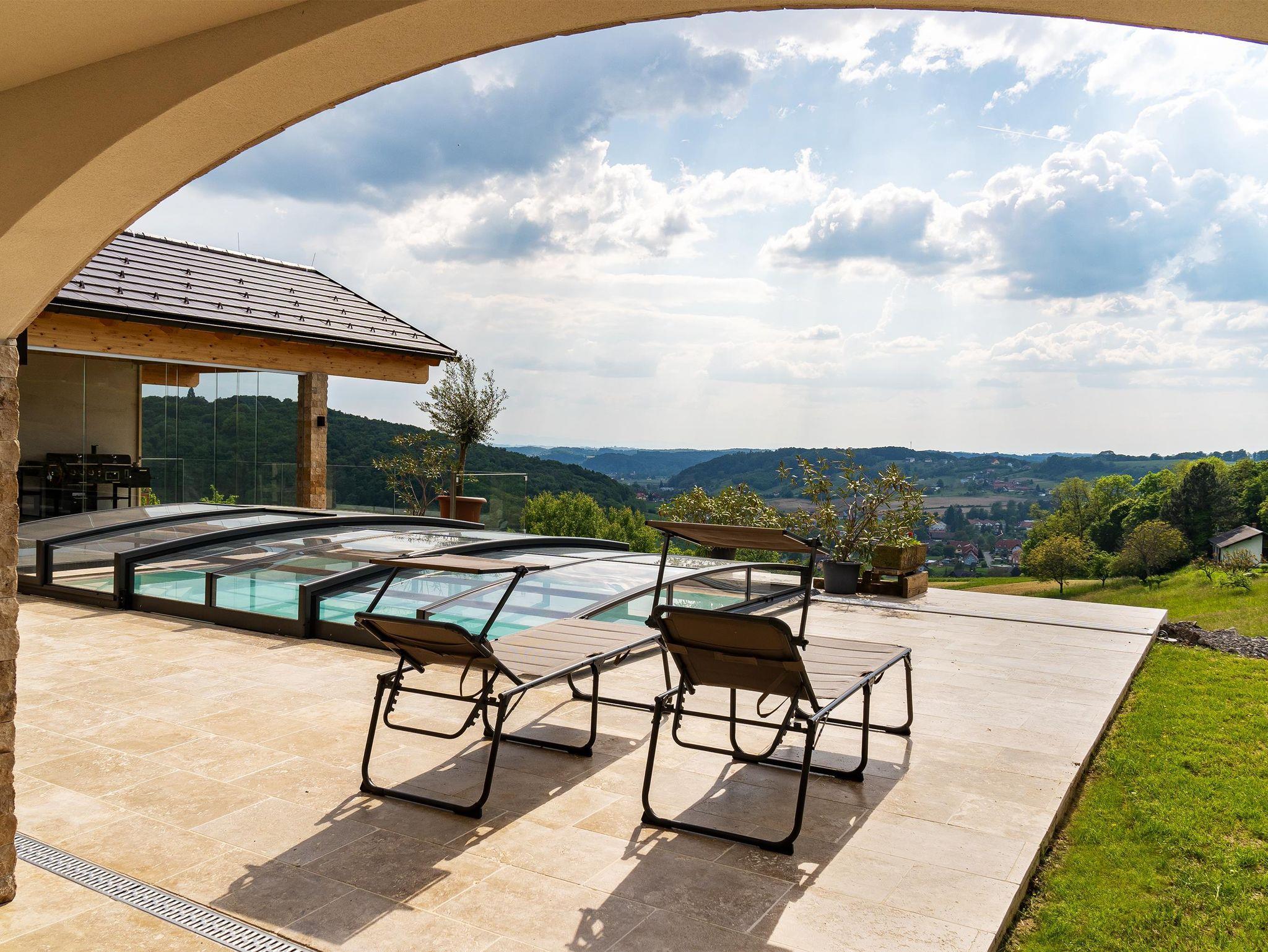 Die Urlaubsoase Hügelperle ist großzügig angelegt und mit ihrer Lage hoch über den Hügeln des steirischen Vulkan- und Thermenlandes eine Rarität. Zwei Urlaubsoasen - Abendrot und Lavendel - stehen für Urlaubsgäste zur Buchung zur Verfügung. Auf jeweils 52 m² genießt man seinen entspannten Uraub und erfrischt sich im Salzwasserpool vor den Türen der Ferienwohnungen.