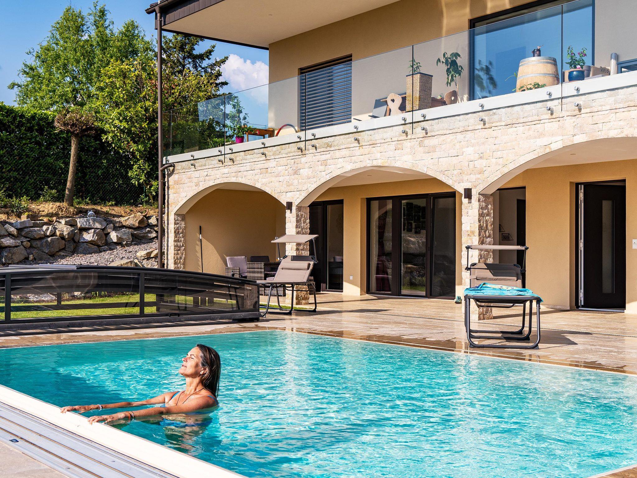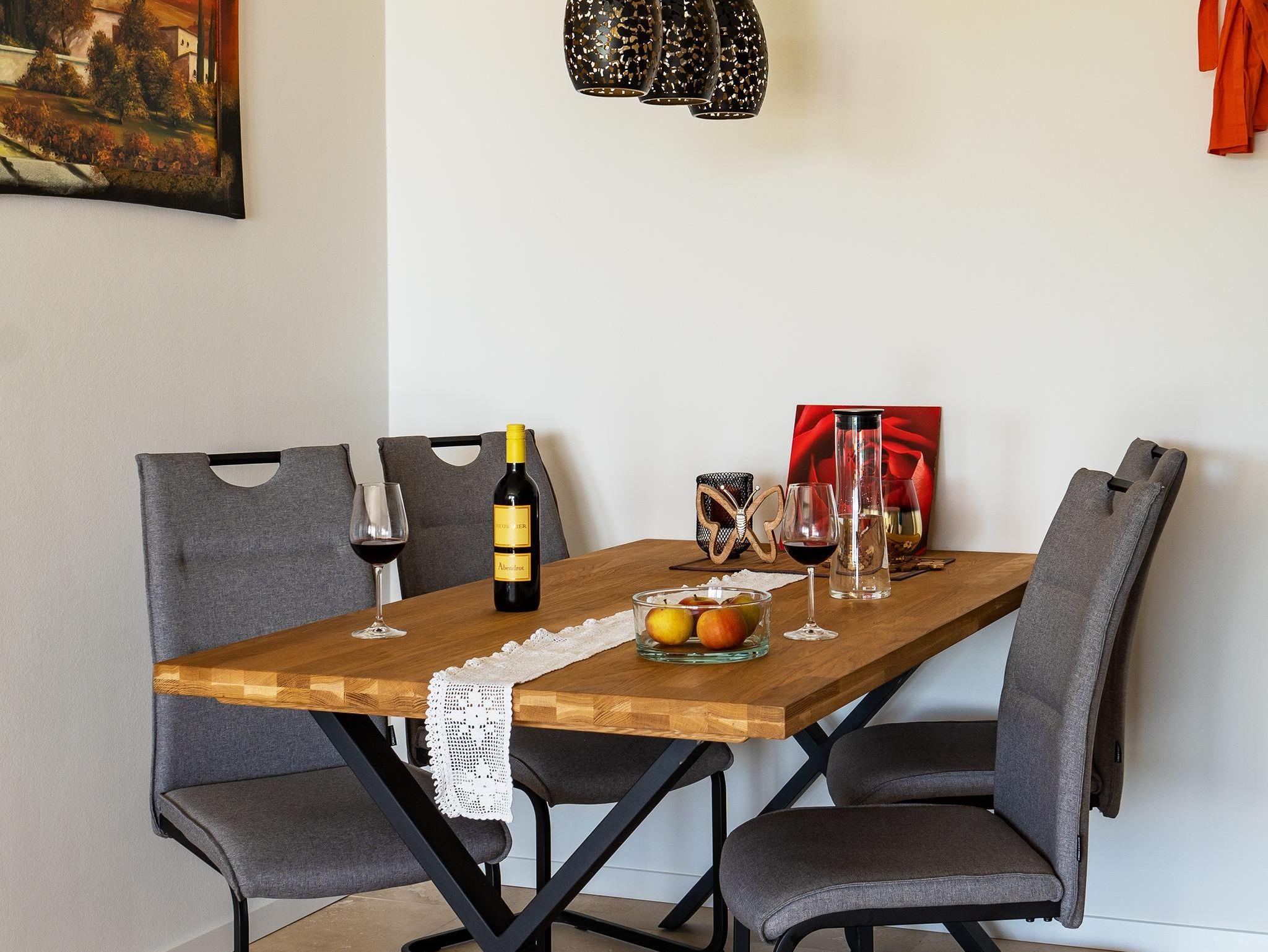 Besonderes Highlight: Lassen Sie den Tag am beheizten Salzwasserpool ausklingen, blicken Sie in den Sternenhimmel und genießen Sie Urlaubsfeeling pur. Der edle Fliesenboden verleiht beiden Apartments zusätzlich ein mediterranes Flair.