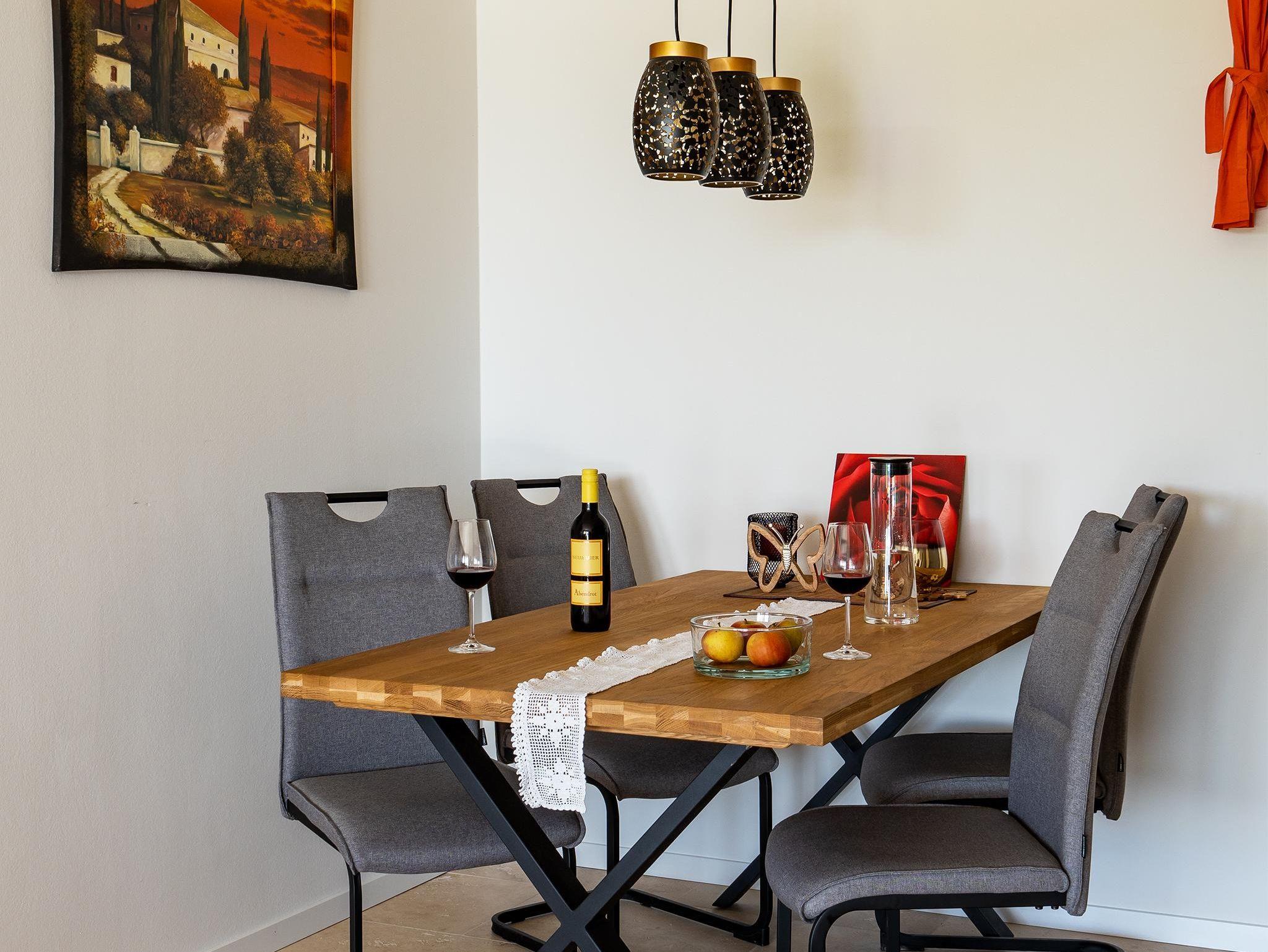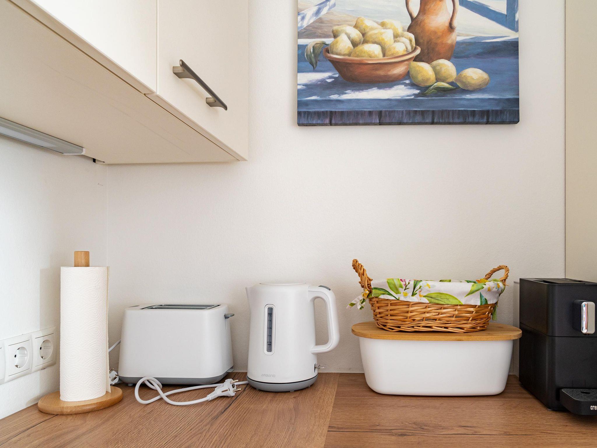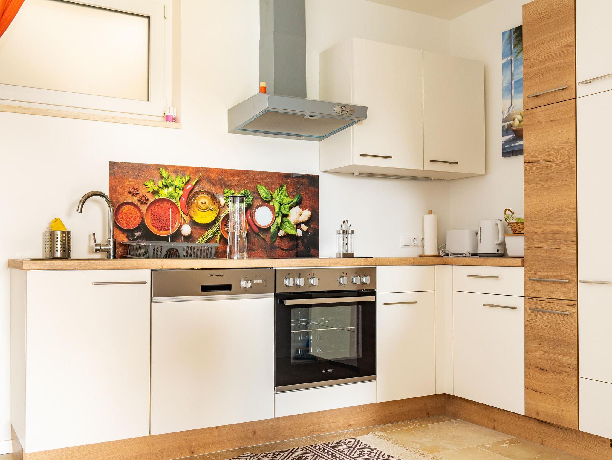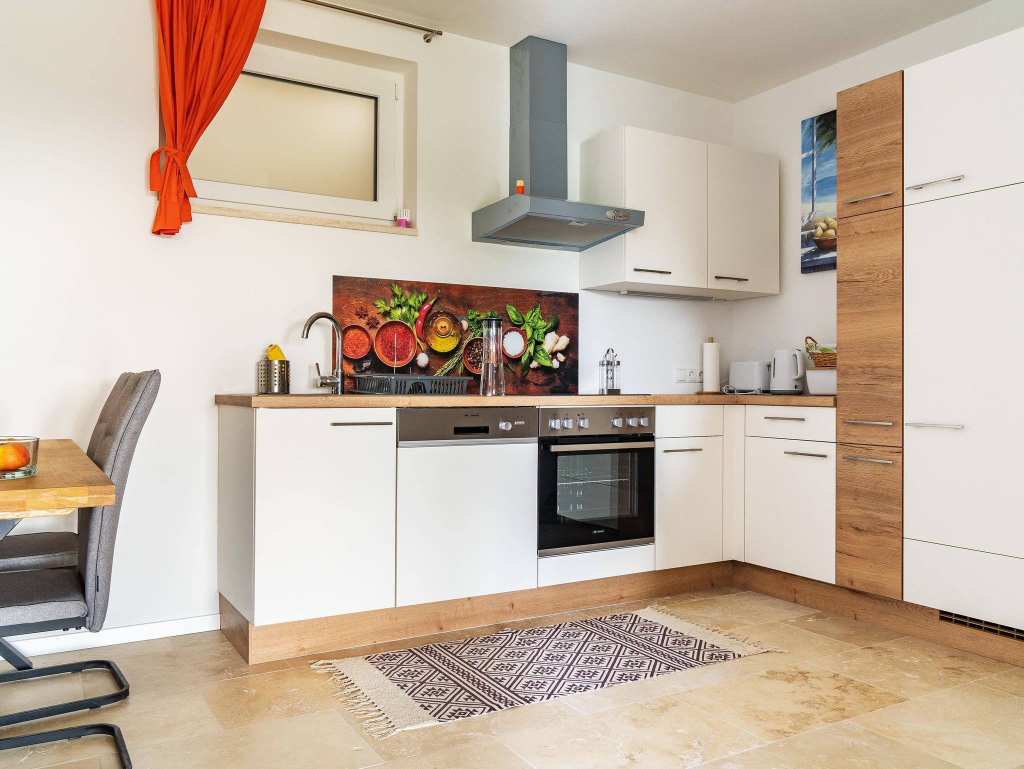 Die voll ausgestattete Küche macht kulinarische Genussmomente möglich – ob Frühstück mit Panorama, ein entspanntes Abendessen oder kleine Köstlichkeiten vom Markt.