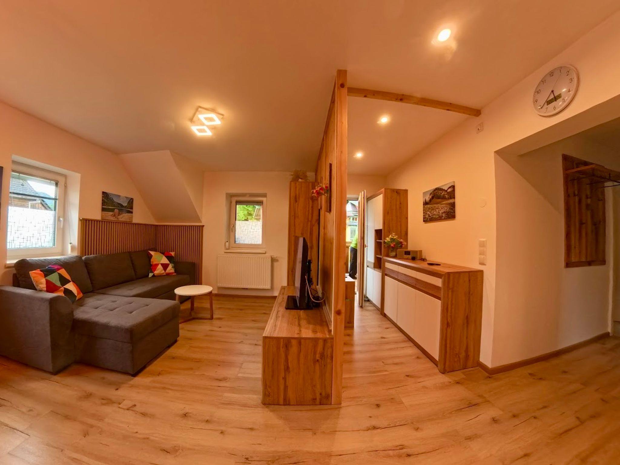Das rund 47m² große Appartement besteht aus einer komplett eingerichteten Wohnküche, einem Doppelzimmer mit Beistellcouch, Bad und WC. SAT-TV, Bettwäsche, Hand-und Badetücher, sowie Strom im Preis inbegriffen. Darüber hinaus stehen beim Gästehaus kostenfreie Privatparkplätze zur Verfügung. Für Kinder und Babys ist ein Gitterbett vorhanden. Nur 500m trennen Sie vom Hallstättersee.