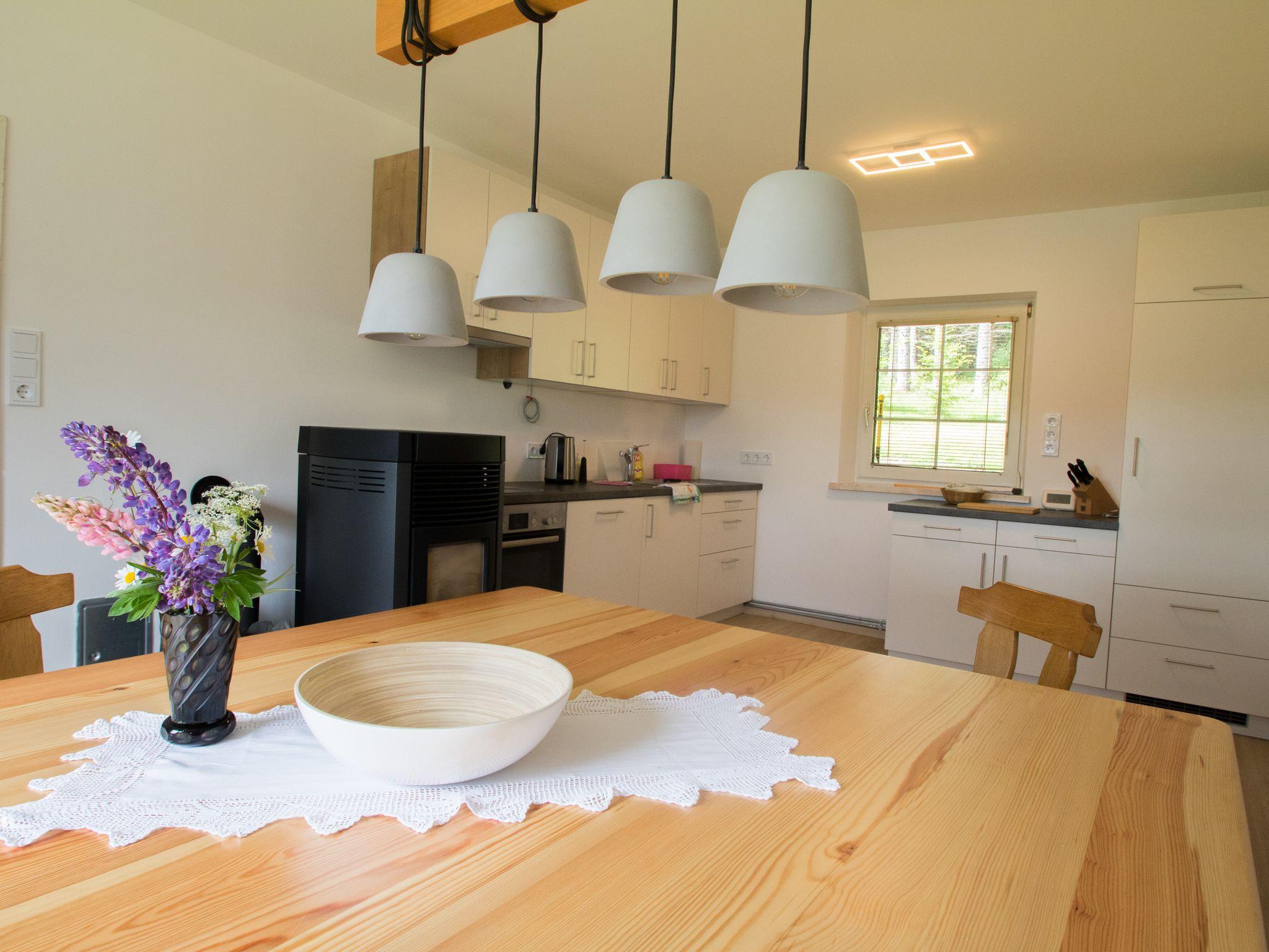 Eine große Stube mit gut eingerichteter Küche (Geschirrspüler, Backofen und Tschibo Kaffeemaschine) ist der zentrale Raum. Ein Pellets Ofen sorgt für gemütliche Wärme im Haus. 2 Schlafzimmer bieten Platz für 4 Personen.