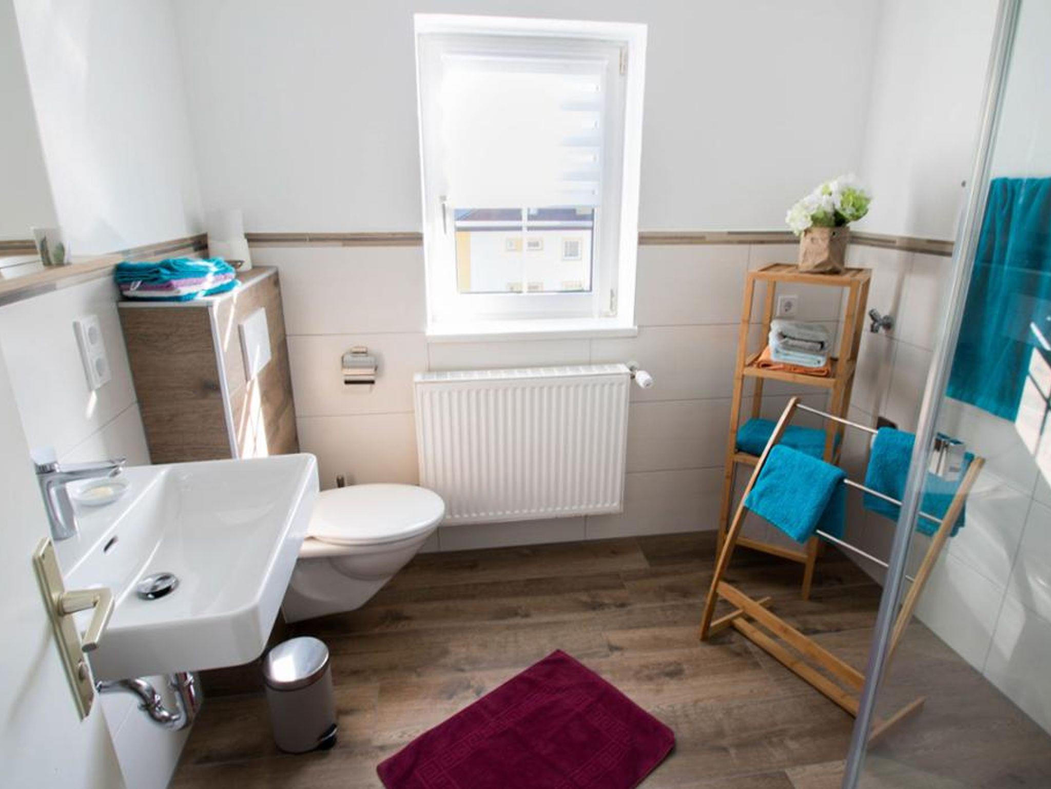 1 Badezimmer mit Dusche & Föhn steht zur Verfügung. Unser Ferienhaus hat auch einen TV.