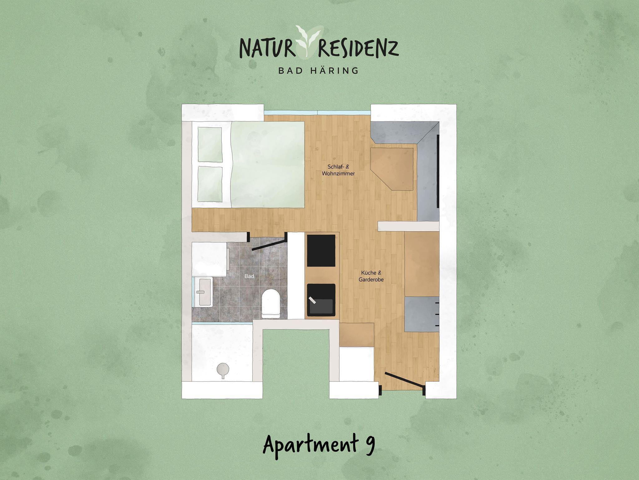 Alles neu, alles modern und alles geschmackvoll eingerichtet - oder einfach: deine Natur Residenz Bad Häring. Die Apartments der Natur Residenz Bad Häring sind sowohl funktional als auch gemütlich und stilvoll eingerichtet. Alle Wohnungen sind mit einer vollausgestatten Küche, einem Geschirrspüler und einem Backrohr ausgestattet. Die liebevoll eingerichteten Ferienwohnungen der Natur Residenz Bad Häring verfügen zudem über Bettwäsche, Handtücher und einen Fön. Des weiteren stellt die Natur Residenz Bad Häring jedem Apartment einen kostenfreien Parkplatz zur Verfügung. Da sich die Natur Residenz wunderbar in Bad Häring gelegen befindet, kann somit auch ihr Auto Urlaub machen, da die wesentlichen Highlights des Urlaubsortes entweder zu Fuß oder via Bus erreicht werden können. Unsere Apartments 1-5 und 9 befinden sich in den oberen Stockwerken, Apartment 6-8 liegen durch eine Souterrain Lage etwa 0,5m unter Bodenniveau. Trotzdem bieteten die Wohnungen genügend Tageslicht.