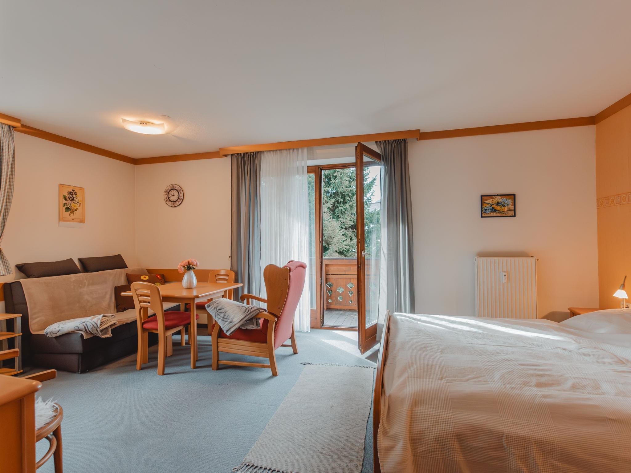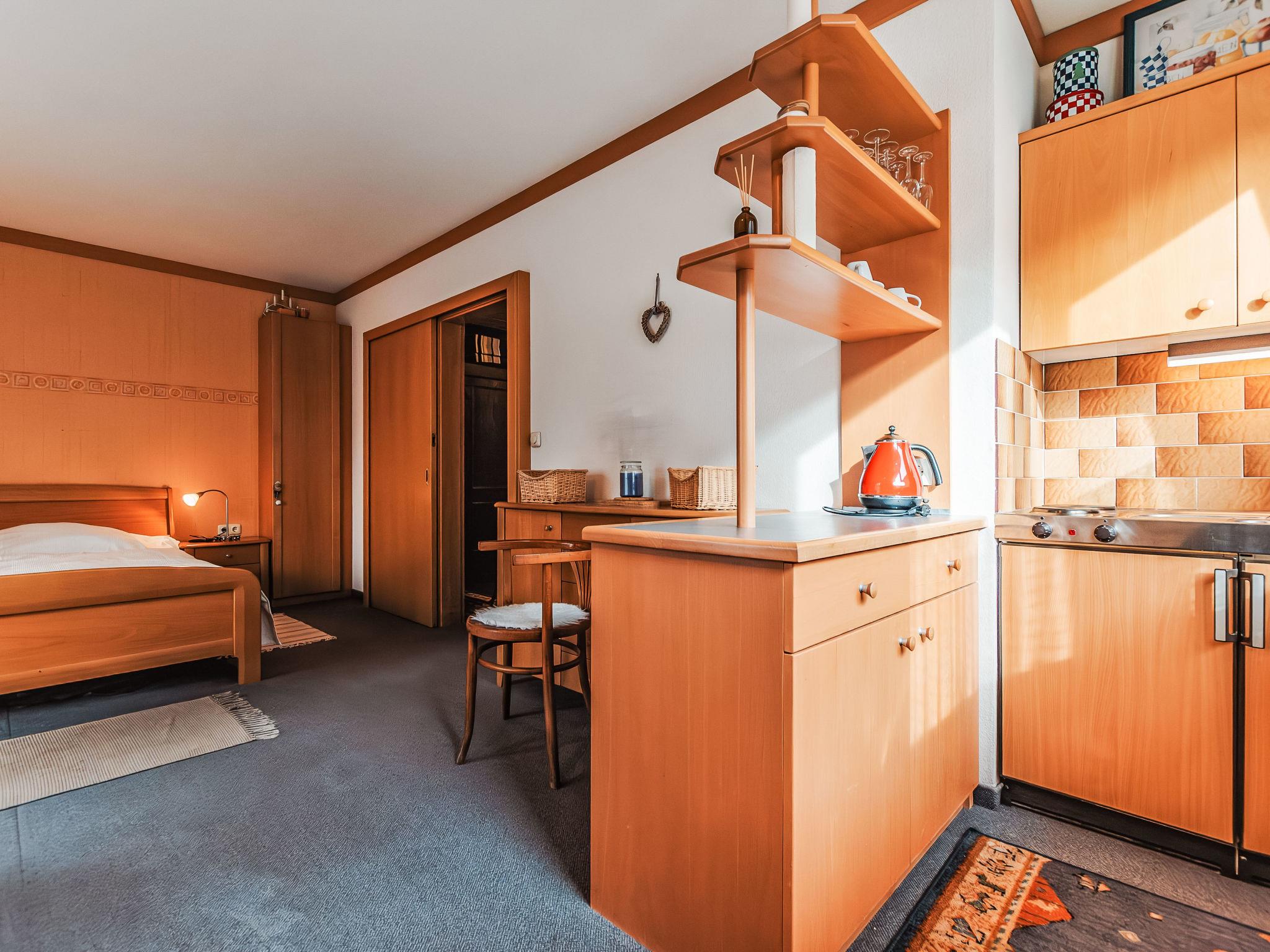 "Schmuckstück", 1-room studio 30 m2. Object suitable for 2 adults. Bright, simple and comfortable furnishings: entrance hall. Living/sleeping room with 1 double bed and dining table. Exit to the balcony. Small, open kitchen (2 hot plates, toaster, kettle, electric coffee machine). Shower/WC. Carpet. Very beautiful view of the mountains. Parking space n 2 (1 car). Please note: non-smokers only, non-smoking house. 50402-000828-2024