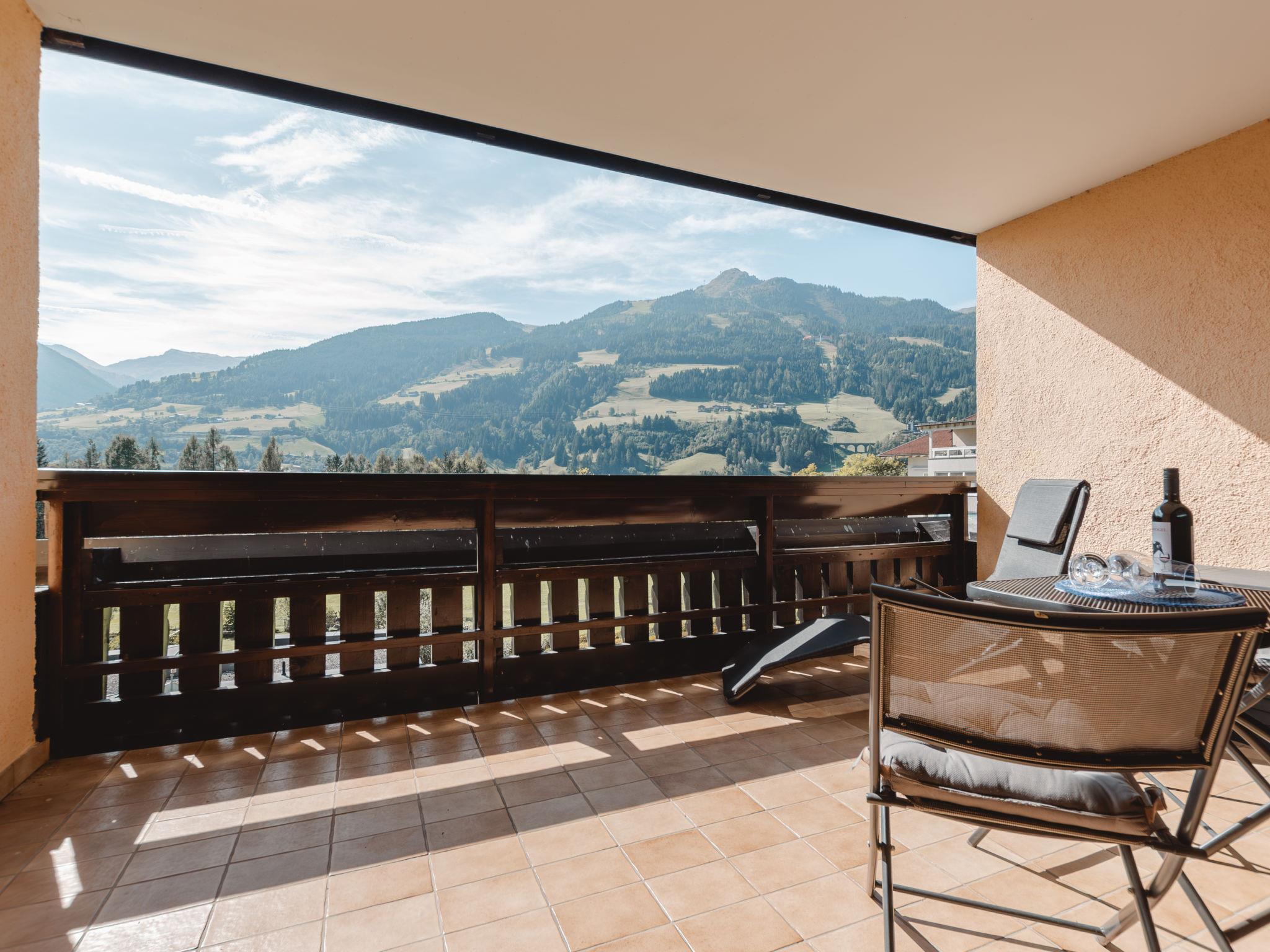 "Rose", 1-room apartment 35 m2 on 3rd floor. Bright, very comfortable and modern furnishings: living/sleeping room with 1 sofabed, 1 double bed, dining nook and cable TV (flat screen). Exit to the balcony. Open kitchen (oven, 4 ceramic glass hob hotplates, toaster, kettle, microwave, electric coffee machine, Capsules for coffee machine (Tschibo)). Shower, sep. WC. Electric heating. Carpet. Balcony 11 m2. Balcony furniture, deck chairs (2). Marvellous panoramic view of the mountains and the garden. Facilities: hair dryer. Internet (WiFi, free). Garage space n 300. Please note: suitable for families. Non-smokers only. Smoke alarm, fire extinguisher. 2 children up to 15 years possible on request. 50402-000675-2020