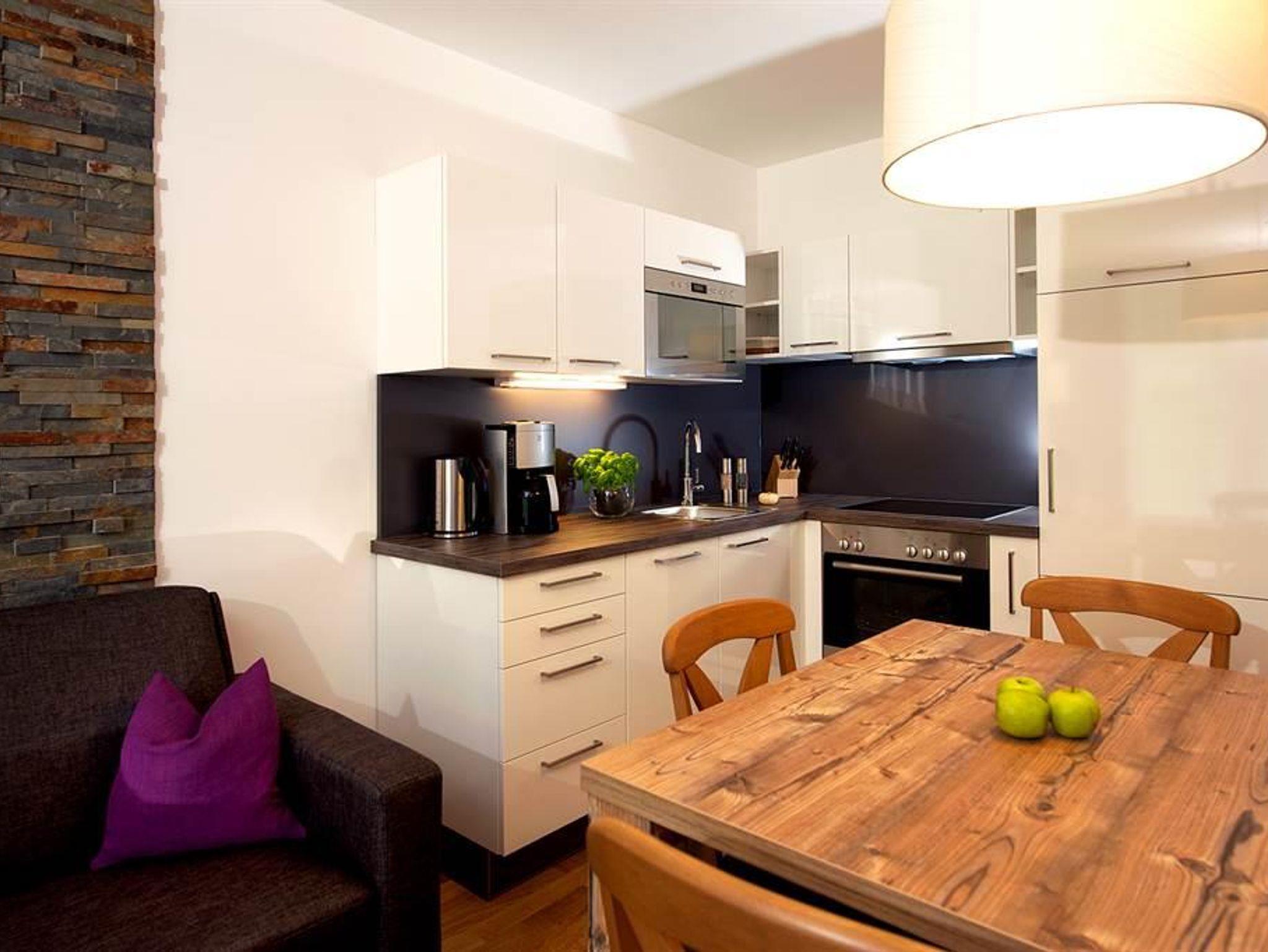 Wo alpiner Lifestyle gelebt wird – erst 2012 eröffnet, bestechen unsere fünf, rauchfreien Apartments durch ihre zeitgenössische und stilvolle Einrichtung. Hochwertige Vollholzmöbel und warme Farben verleihen den 50-69m² großen und für 2-6 Personen ausgelegten Wohnungen Charme und einen eigenen Charakter. Im ersten Stock oder im Dachgeschoss gelegen, genießen Sie hier schon beim Aufstehen einen unvergesslichen Blick auf die Gasteiner Berge. Alle unsere Wohnungen halten eine voll ausgestattete Küche bereit, sodass Sie aktive Ski- und Wandertage mit einem selbst zubereiteten Abendessen ausklingen lassen können.