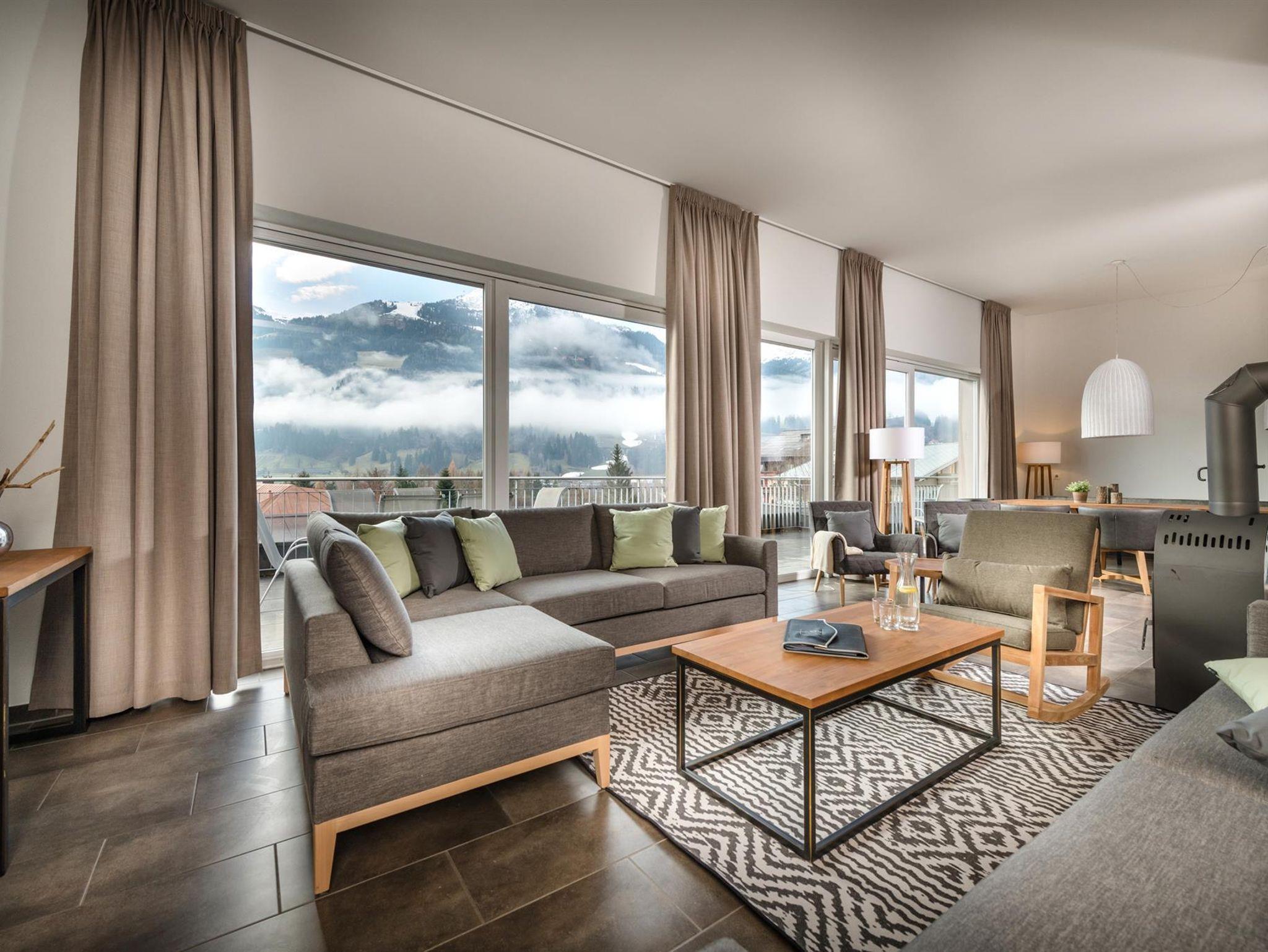Das ALPINE LUXURY bietet auf 90 m² Luxus und Raum für die ganze Familie. - Wohlfühlen & Wohnen auf **** Superior-Niveau - Mindestbelegung 4 Personen - + 2 Zusatzbetten möglich (komfortable ausziehbare Schlafcouch im Wohnbereich) - Wohnraum ca. 90 m² + 1 Balkon + Grünfläche oder 2 Balkone - 2 Schlafzimmer ( Doppelbett, Kleiderschrank) z. T. 1 Schlafzimmer mit Fenster in den Wohnraum. - LCD Fernseher - Vorraum mit Garderobe und Abstellraum - Offener Wohn- Küche- Essbereich - Hochwertige großzügige Einbauküche (im Wohnraum integriert) - 2 Bäder (Badewanne/WC und Dusche/WC) - Skiraum/Radraum außerhalb des Appartements - 1 Garagenplatz inklusive - AlpenParks Lifestyle Ausstattung