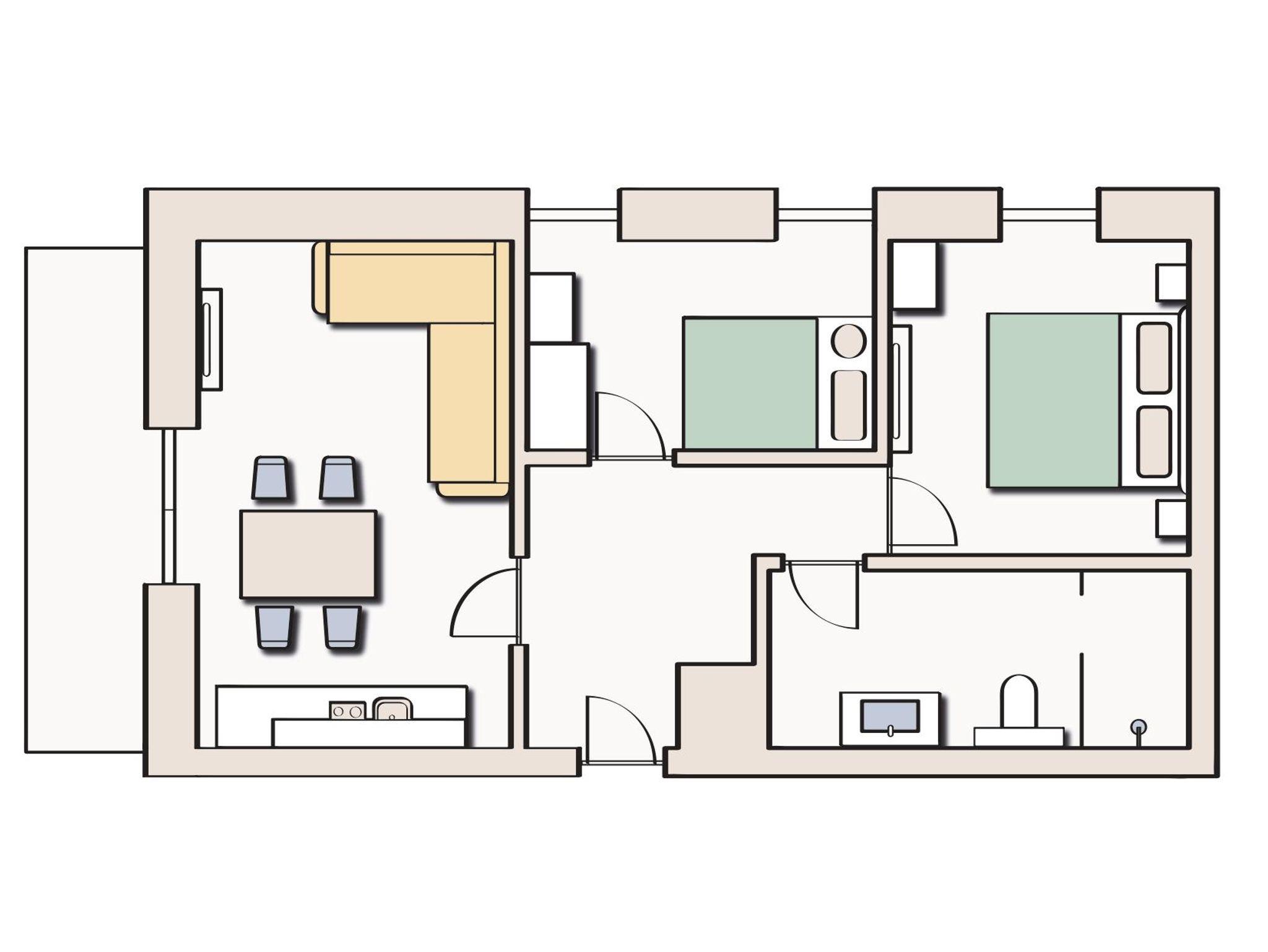 4 – 6 Personen, 52 m² Gemeinsam unterwegs und doch private Stunden genießen: In diesem Apartment stehen dir zwei Schlafzimmer und ein großes Badezimmer für einen entspannten Aufenthalt zur Verfügung. Genieße die Bergwelt von Bad Hofgastein vom apartmenteigenen Balkon aus und erhol dich in deinem Lieblingsplatz’l.