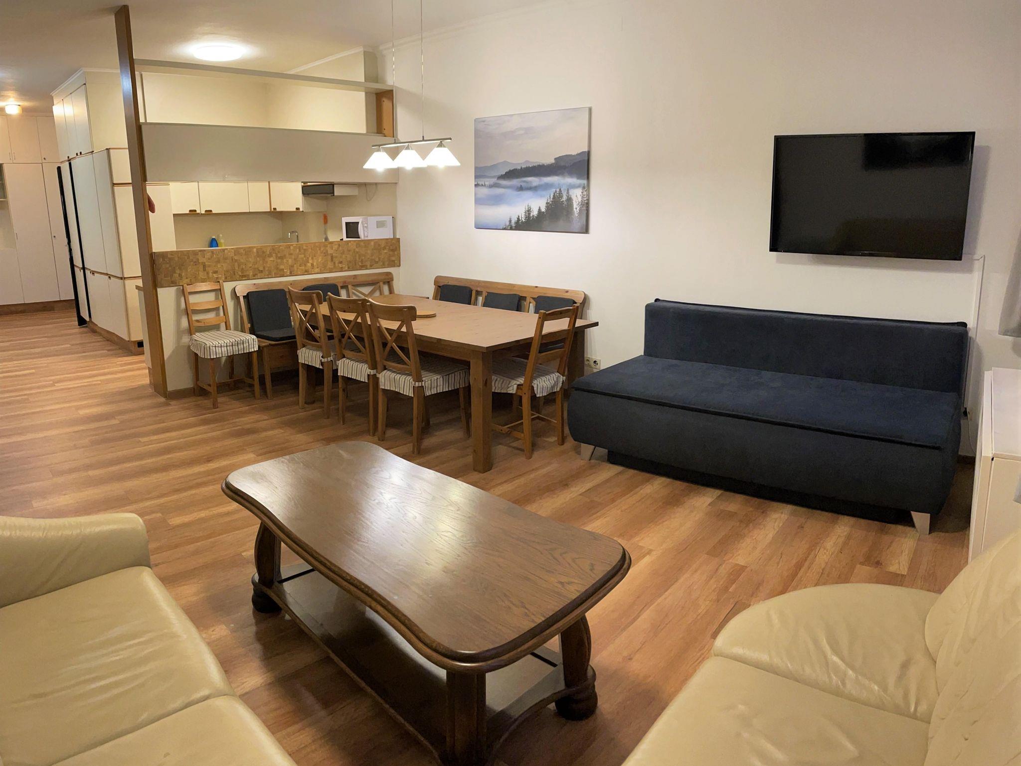 Smart TV-Geräte. Helle Holz Einbaumöbel (App.9 Moderne Weiße minimalistische Möbel) Balkon mit Bergblich (außer App.1/9) 1xBadetuch und 1xHandtuch /Person (auf Anfrage: Kinderbett, Hochstuhl, Bügeleisen, Bügelbrett, Wäschetrockner)