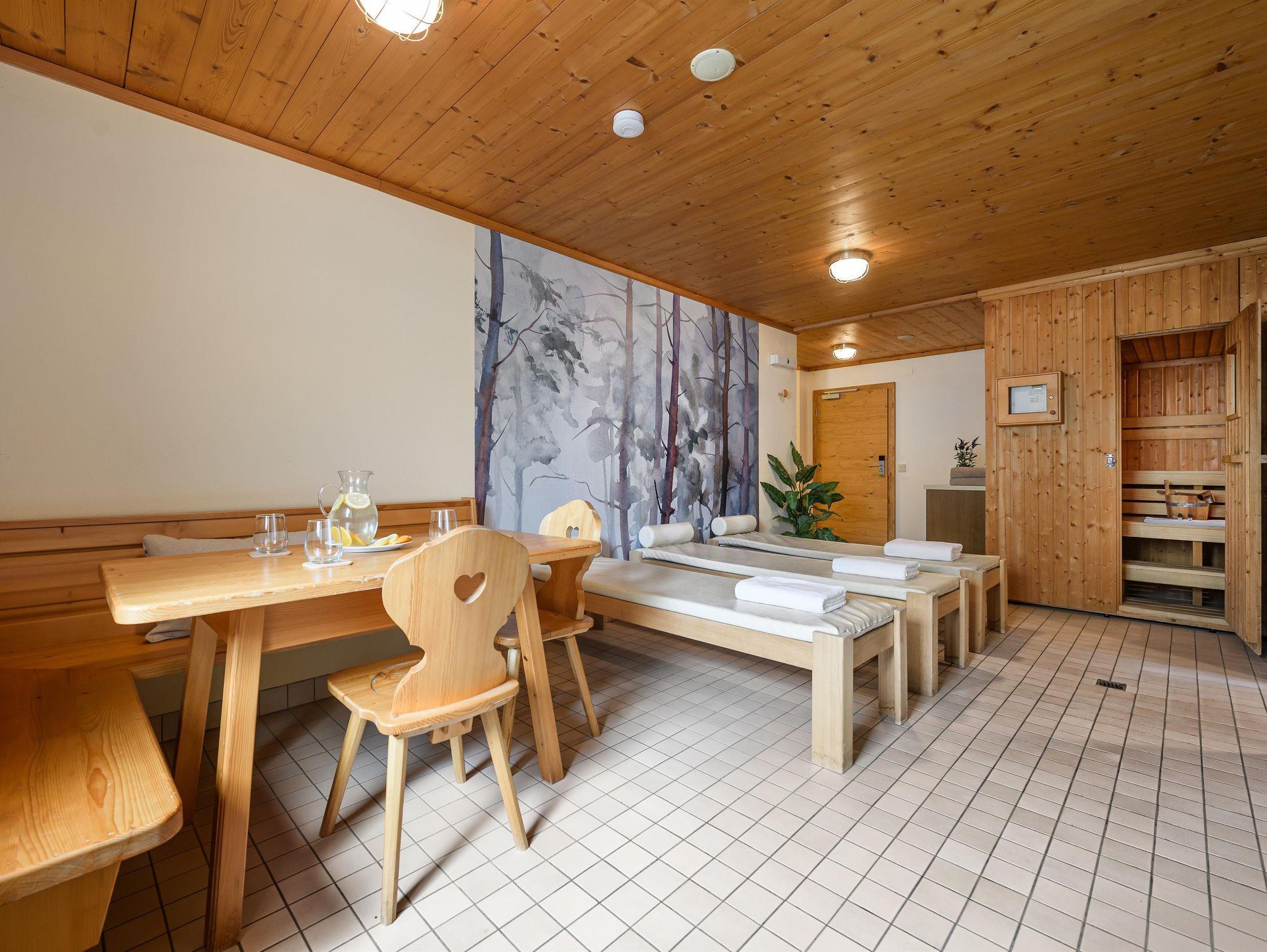 Unser Haus verfügt über einen Lift, Wellnessbereich mit Sauna & Infrarotkabine, Massageraum, Kinderspielzimmer, Tischtennis und Tischfußball, sowie ein Skidepot. Unser W-LAN stehen Ihnen kostenlos zur Verfügung.