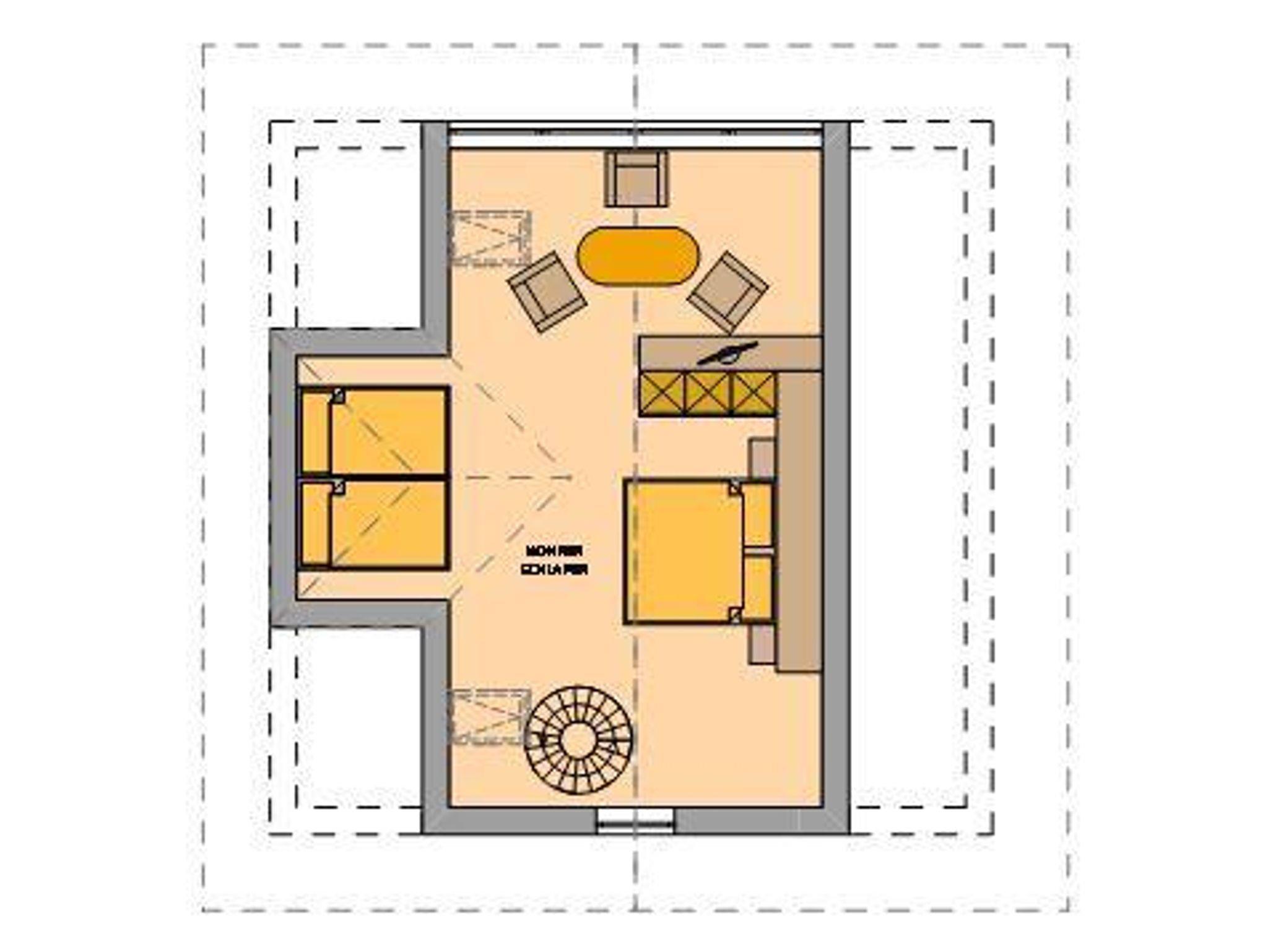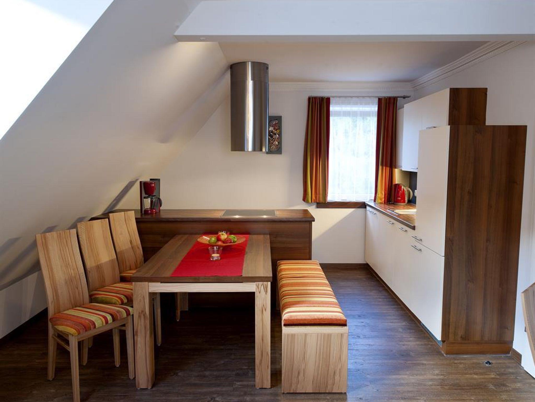 Appartement Panorama - Exklusiv Wohnen auf 108 qm mit traumhaften Blick auf die Berg- und Gletscherwelt. Großer Wohnschlafraum mit Sitzecke, Küche mit Kochinsel, großes Schlafzimmer und Panoramazimmer mit offenem Dachgibel.
