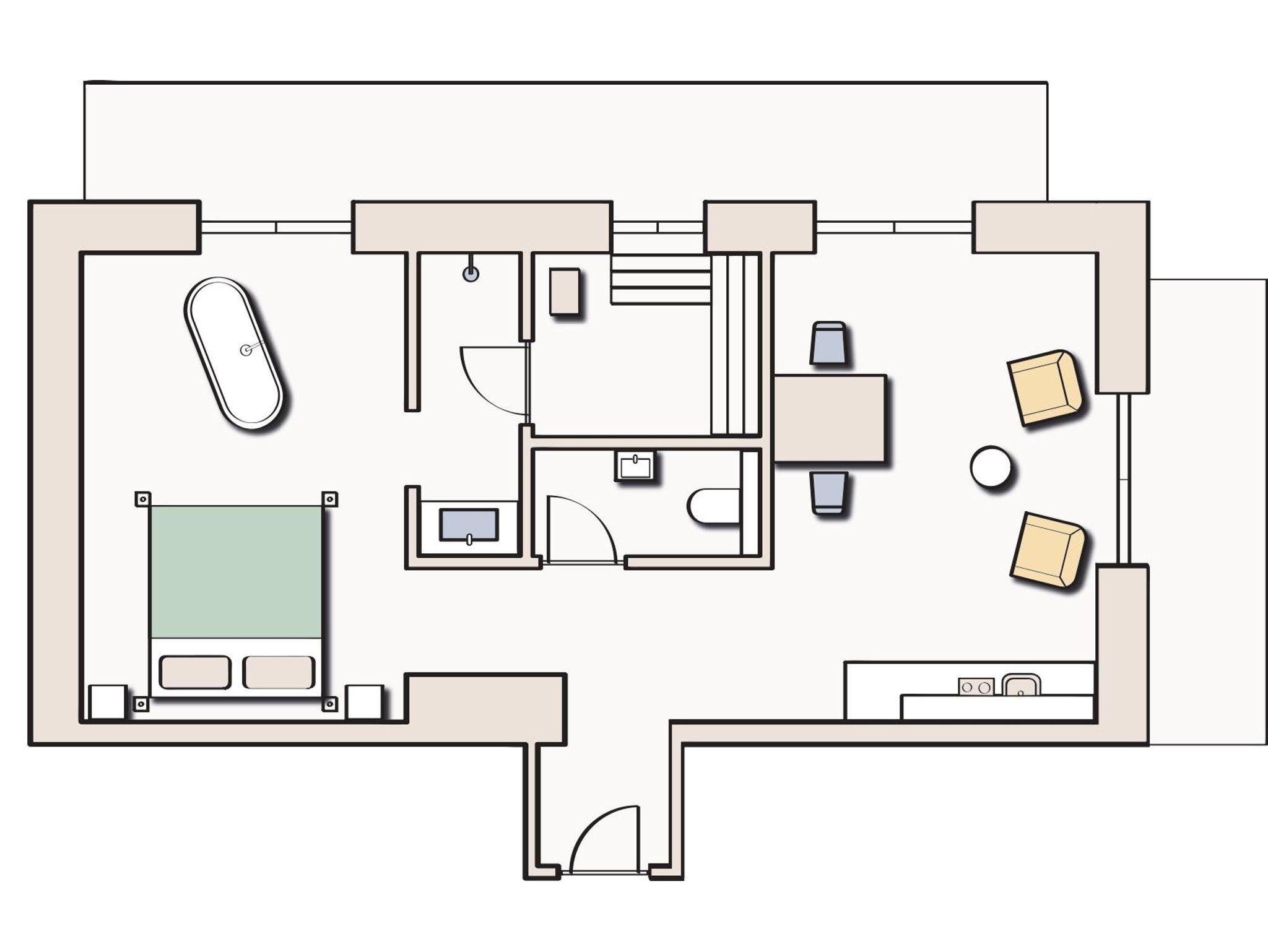 2 Personen, 50 m² Zweisamkeit und Romantik wird in diesem Apartment gelebt: Mit der eigenen Privatsauna, der Panoramabadewanne mit Ausblick auf die Bergwelt von Gastein und noch vielem mehr wird dein Urlaub zu einem unvergesslichen Erlebnis.