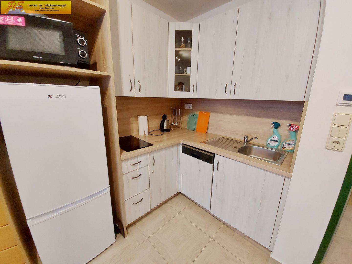Der offen zum Wohnzimmer gestaltete Küchenbereich ist vollständig eingerichtet, sodass Sie Ihre Mahlzeiten flexibel und unabhängig zubereiten können. Dafür stehen Ihnen ein 2-Platten-Herd, eine Mikrowelle, eine Kaffeemaschine, ein Wasserkocher und ein Toaster zur Verfügung. Außerdem sind ein Kühlschrank, ein extra Gefrierschrank sowie ausreichend Koch- und Essgeschirr vorhanden. Ein Esstisch und eine bequeme Sofaecke gehen nahtlos in den Wohnbereich über, in dem ein moderner TV (35–44 Zoll, Kabel und internationale Kanäle, digitaler Empfang) für Unterhaltung sorgt. Kostenfreies WLAN steht Ihnen in der gesamten Unterkunft zur Verfügung; der Internetzugang befindet sich direkt im Apartment.