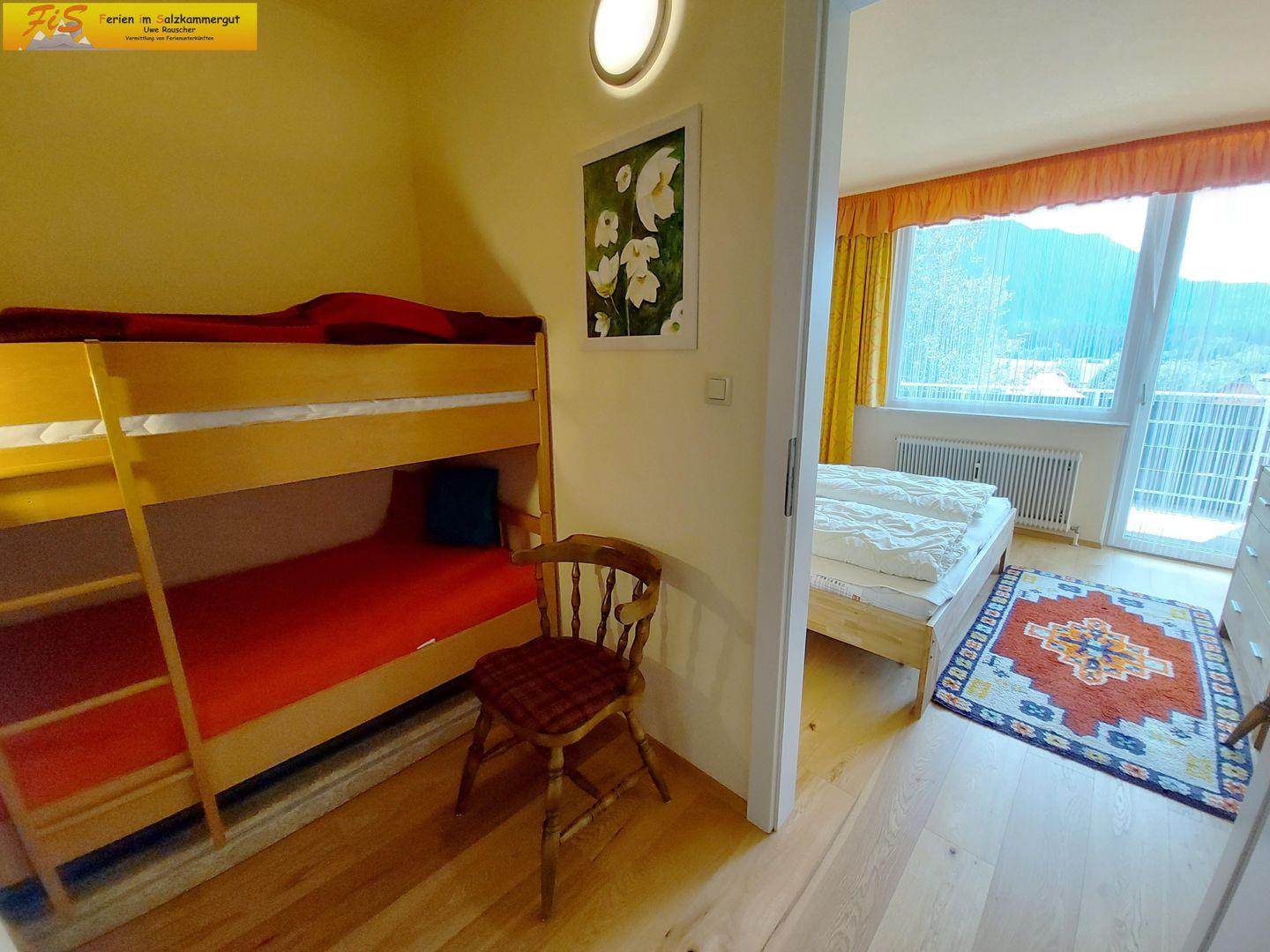 Das Apartment verfügt über ein schönes Schlafzimmer, in dem ein gemütliches Doppelbett auf Ihre Erholung wartet. Dazu kommen weitere Schlafmöglichkeiten im Wohnzimmer und ein Durchgangszimmer mit Stockbett, das sich ideal für Kinder und zusätzliche Gäste eignet. Ein modernes Badezimmer mit Dusche und Badewanne sorgt für zusätzlichen Komfort, während ein Gäste-WC für die praktische Nutzung bereitsteht. Hochwertige Bettwäsche und Handtücher sind selbstverständlich inklusive.