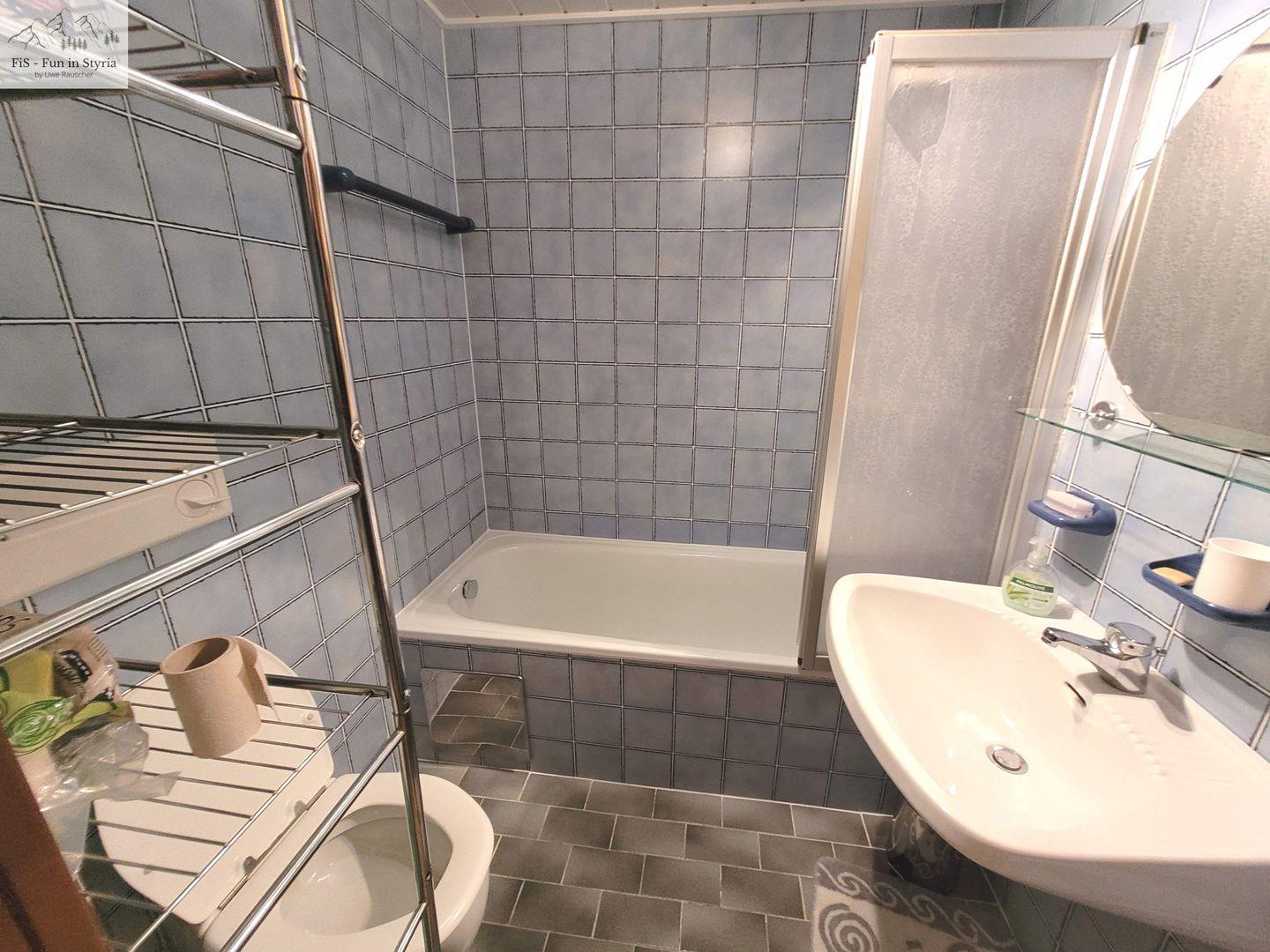 - Badezimmer mit Badewanne, Dusche, Waschtisch und WC