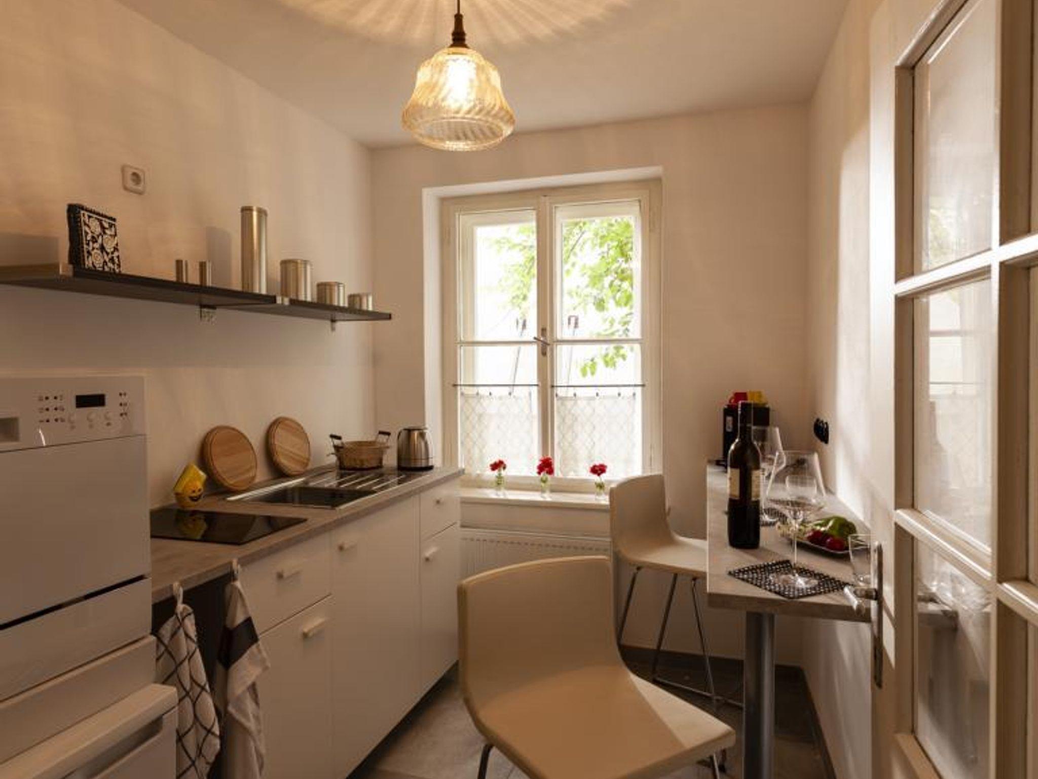 Die beiden Appartements liegen in einem ruhigen Innenstadthof nur wenige Schritte entfernt von Hauptplatz, Parktherme, Grenzbrücke zu Slowenien und wurden 2020 generalsaniert. Im Hof steht ein schattige Laube mit Sitzgarnitur zur Verfügung, Frühstückslokale sind fußläufig leicht erreichbar, Zustellung durch eine Bäckerei ist möglich. Fahrräder können unter Dach abgestellt werden. 1 Parkplatz im Hof, weitere Parkplätze in 500 m Entfernung. In der Küche befindet sich ein Kühlschrank, ein Herd, ein Geschirrspüler, ein Mikrowellenherd, eine Kaffeemaschine (Kapseln) sowie Geschirr. WiFi ist kostenlos benützbar. Boxspringbett im Schlafzimmer, Sat-TV.