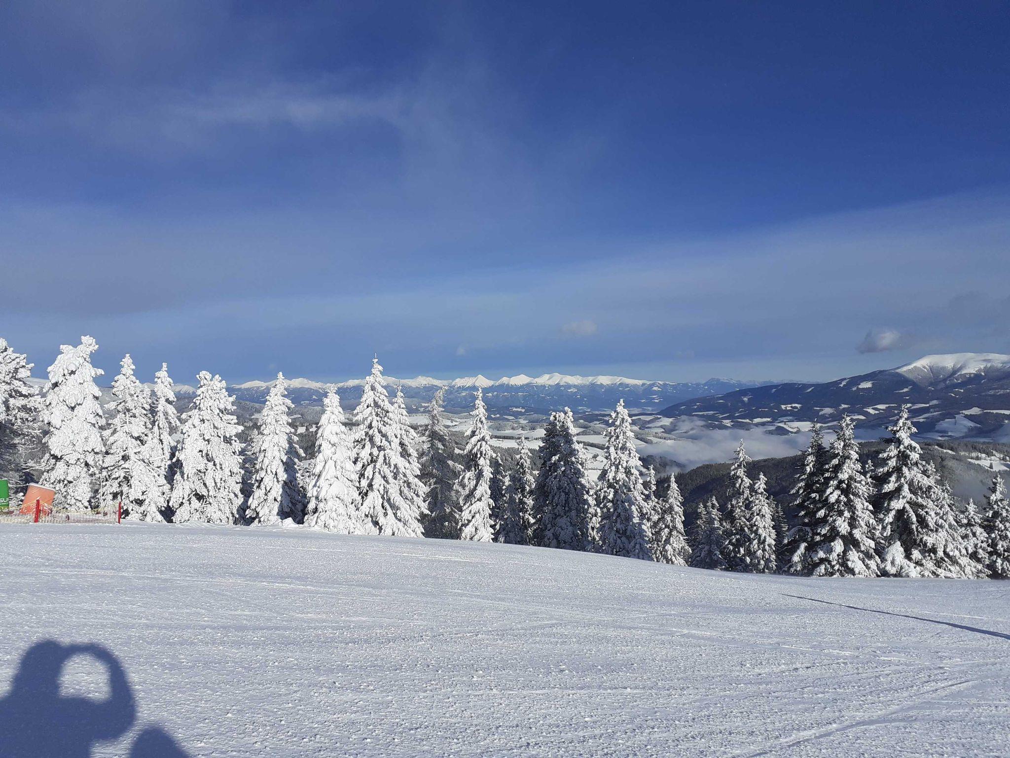 Auf 1500 m Höhe haben Sie von unserer großen Terrasse eine herrliche Aussicht auf das Lavanttal, die Packalpe, die Koralpe, die Saualpe bis zu den Karawanken.