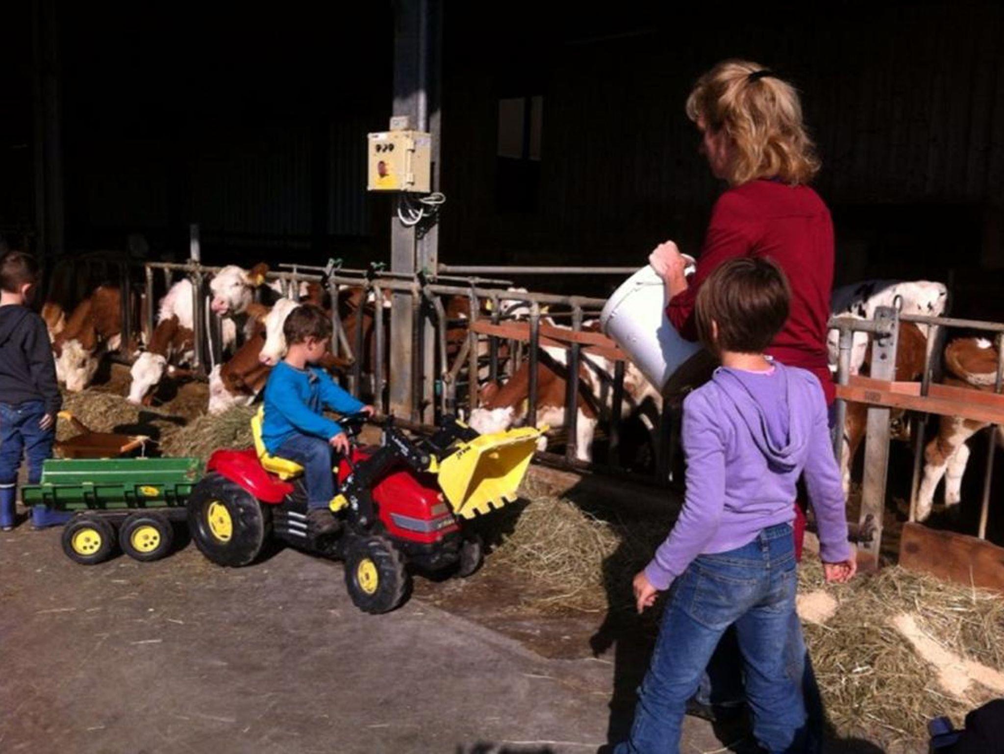 Wir sind ein landwirtschaftlicher Vollerwerbsbetrieb mit Jungrindern/Kühe und vielen Kleintieren(Hasen,Ponnys Ziegen;...). Unser überdachtes Schwimmbad, Spielplatz, Riesensandhaufen, Trampolin, Tischtennis, Go-Kart, Rutschautos, Spielesammlung und Spielräume für verschiedene Altersgruppen warten darauf von Euch entdeckt zu werden.
