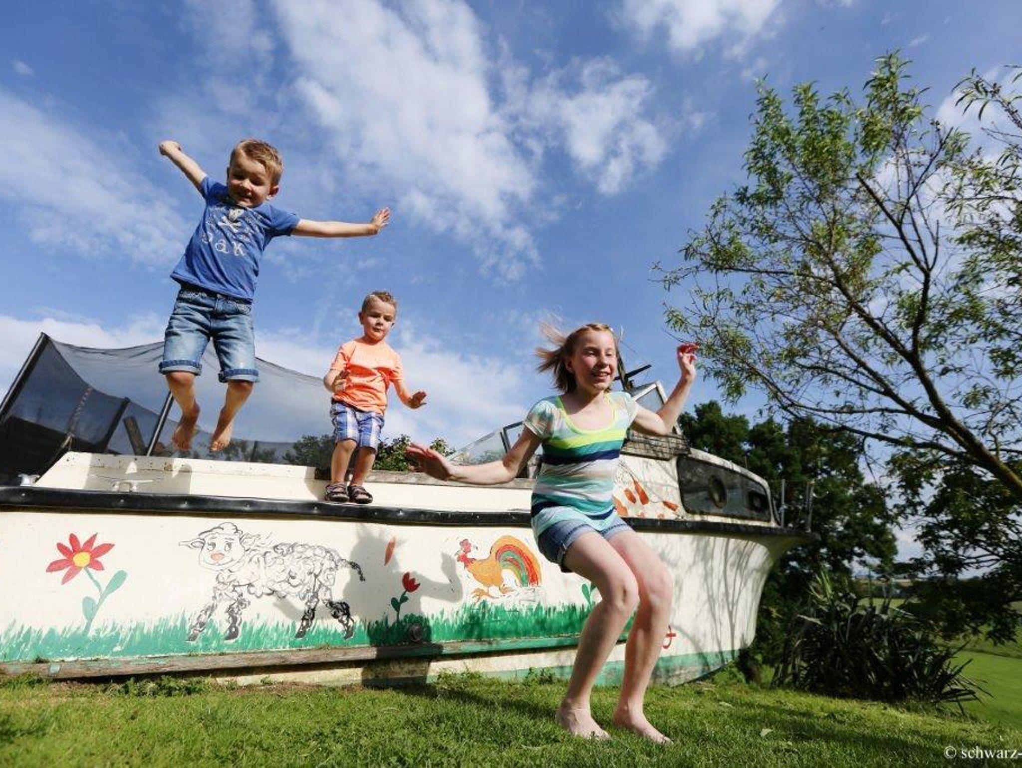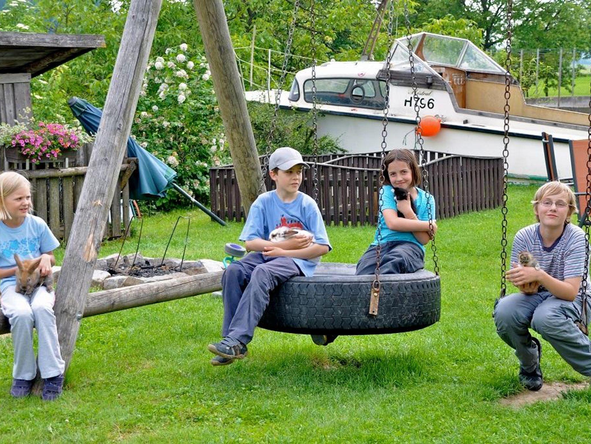Wir sind ein landwirtschaftlicher Vollerwerbsbetrieb mit Jungrindern/Kühe und vielen Kleintieren(Hasen,Ponnys Ziegen;...). Unser überdachtes Schwimmbad, Spielplatz, Riesensandhaufen, Trampolin, Tischtennis, Go-Kart, Rutschautos, Spielesammlung und Spielräume für verschiedene Altersgruppen warten darauf von Euch entdeckt zu werden.