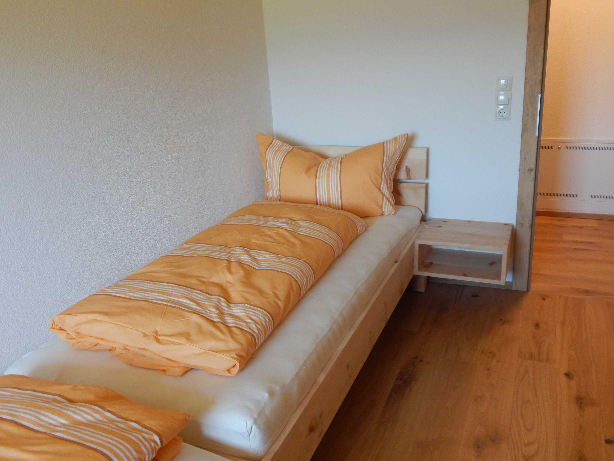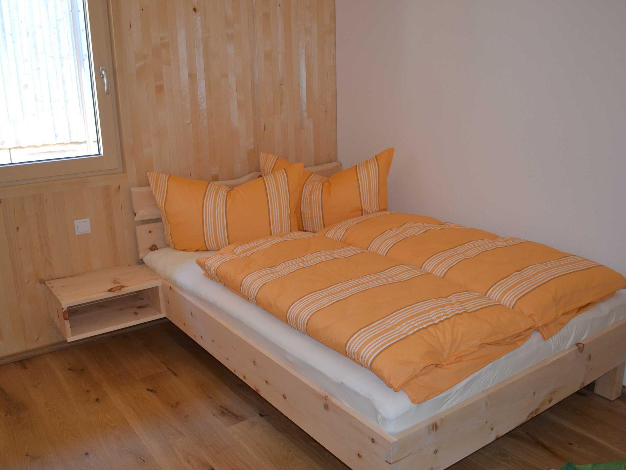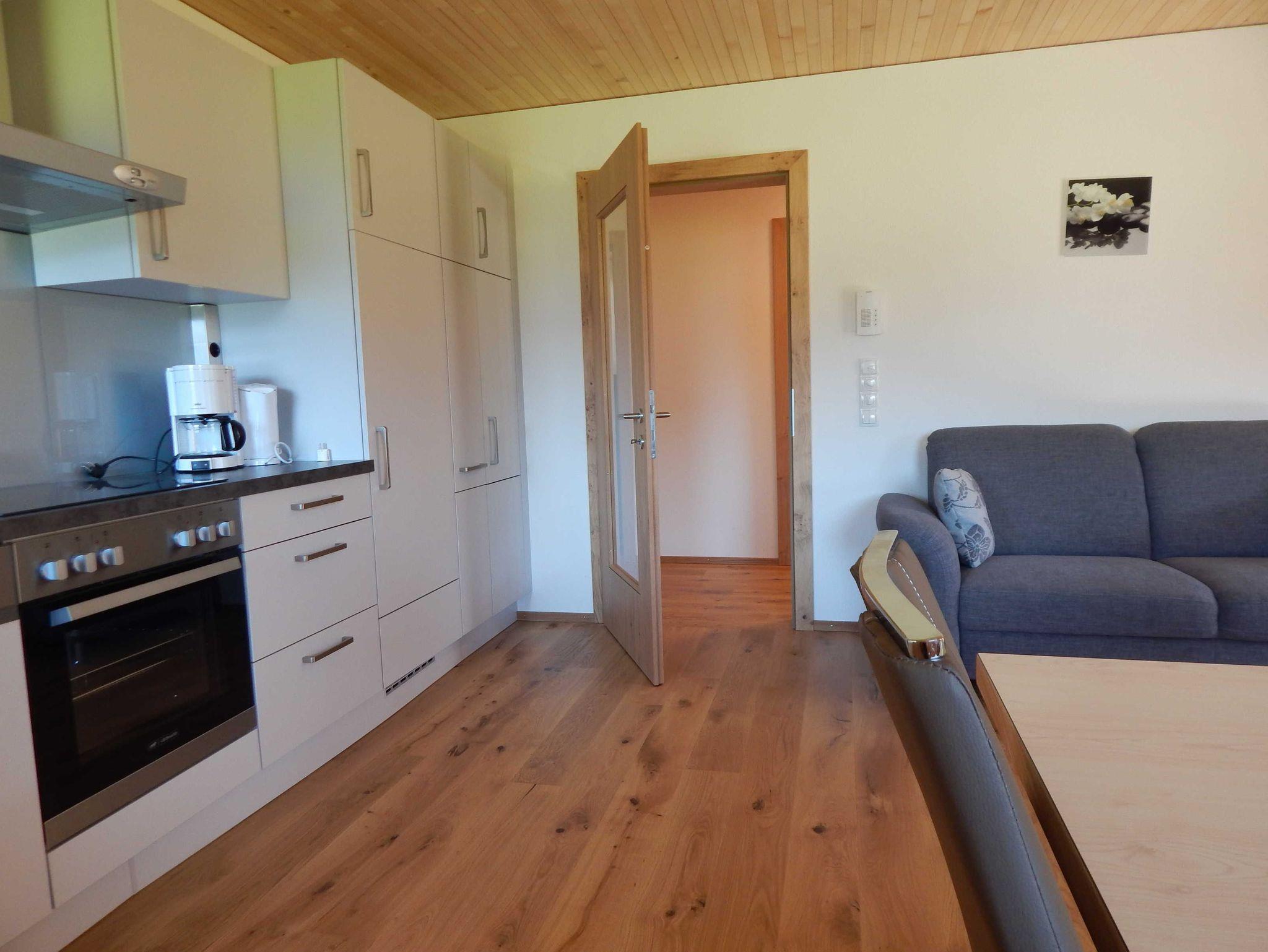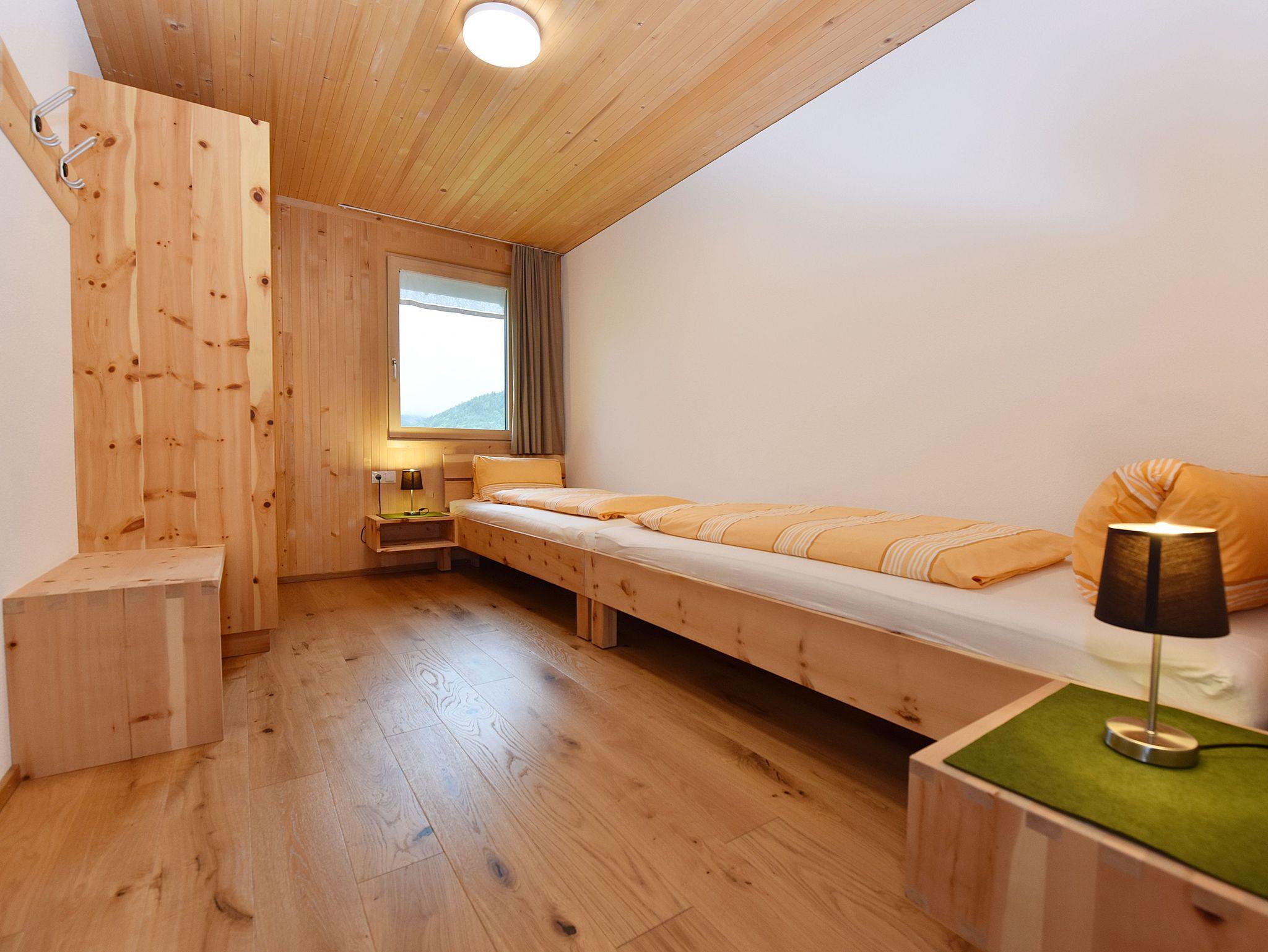 Großzügige Ferienwohnung in Massivholzbauweise: Heimelige Atmophäre Zirbendoppelbett, Balkon direkt vom Wohnraum begehbar. Herrlicher Blick in die Natur.