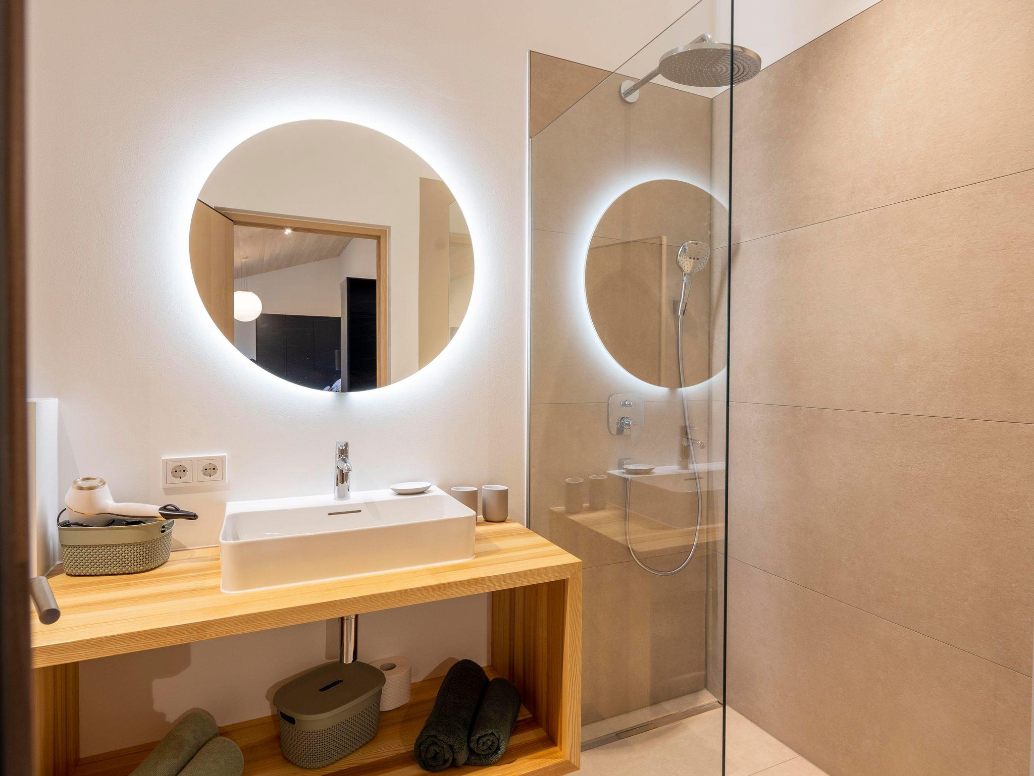 Die großen Fenster lassen viel Licht in den Raum und bieten einen herrlichen Blick auf die umliegenden Berge. Ob ruhige Abende in der gemütlichen Wohnlandschaft oder erlebnisreiche Tage in der Natur – dieses Apartment bietet die perfekte Mischung.
