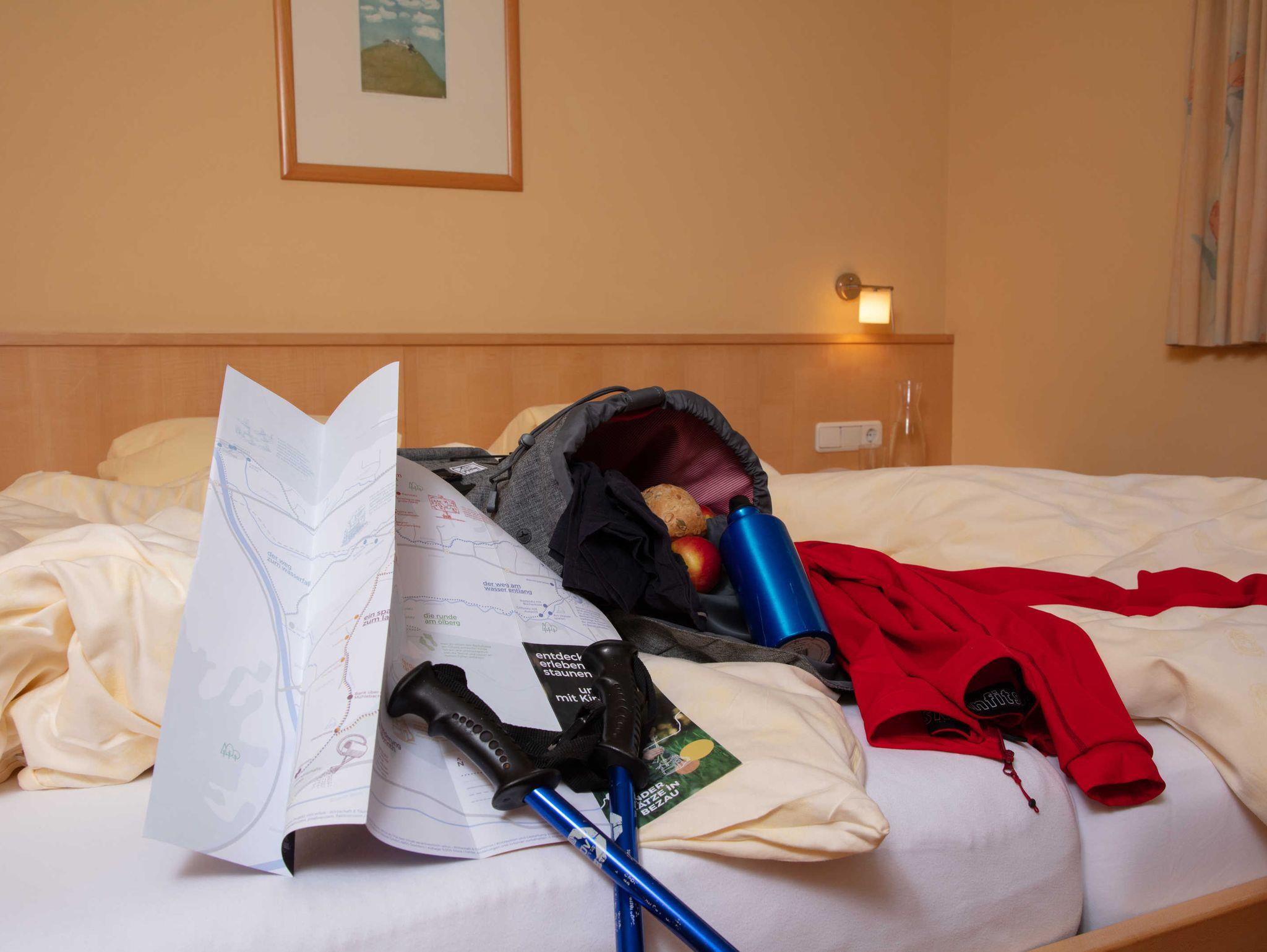 Hell, gemütlich und geräumig präsentieren sich die „Sonne- und Bergezimmer“, alle bieten auf dem Balkon einen fantastischen Ausblick in die Berge.