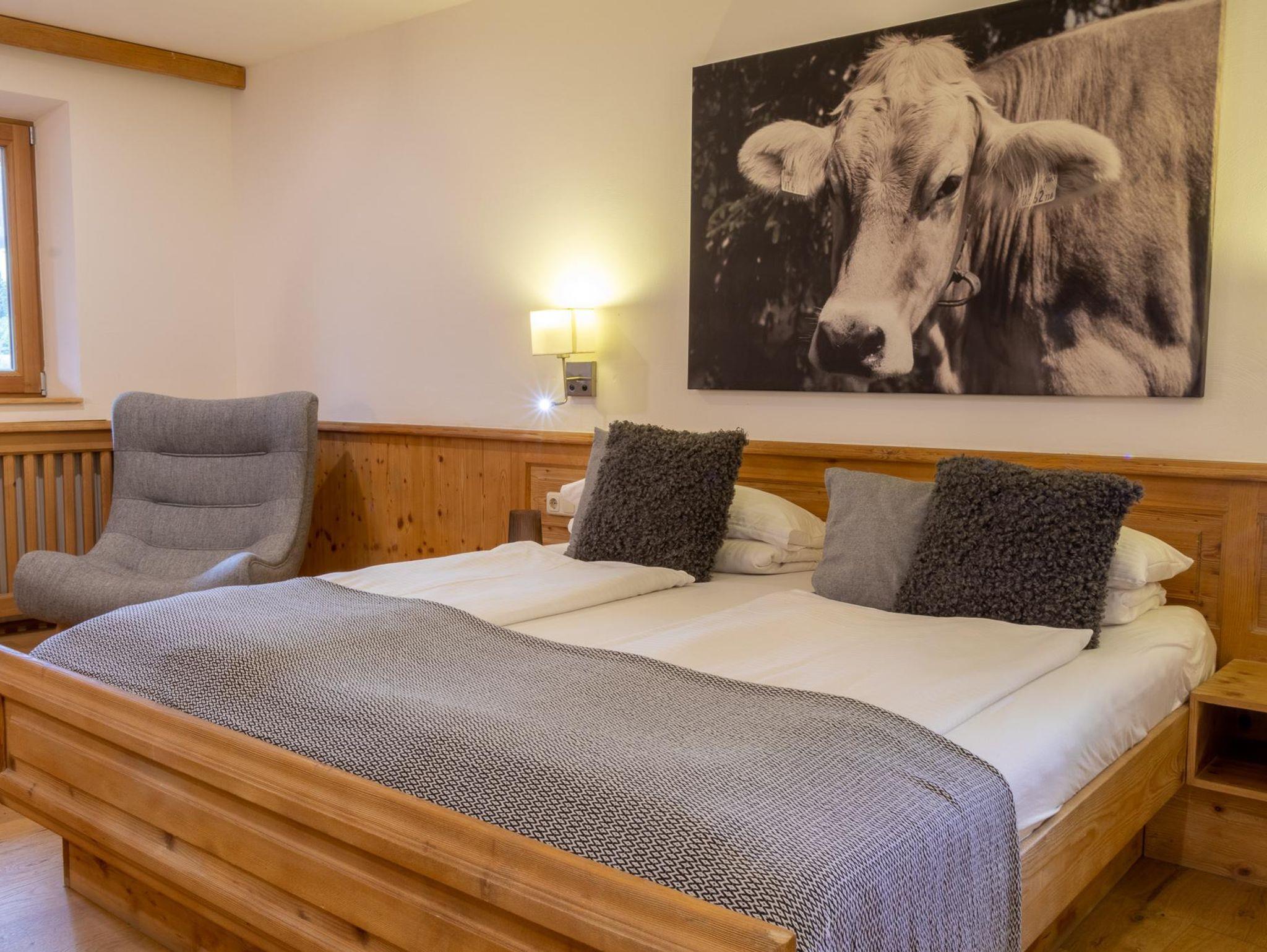 Die Family Suite bietet auf 36 m² Platz für bis zu 3 Personen – ideal für Familien, die Komfort und Natur miteinander verbinden möchten. Der großzügige Wohn- und Schlafbereich umfasst ein gemütliches Doppelbett sowie einen leicht abgetrennten Bereich mit Einzelbett. Eine voll ausgestattete Küche und ein modernes Bad mit Dusche sorgen für ein angenehmes Wohngefühl. Vom sonnigen Südbalkon genießen Sie einen traumhaften Blick auf die Berge. Der Aufzug bietet bequemen Zugang.