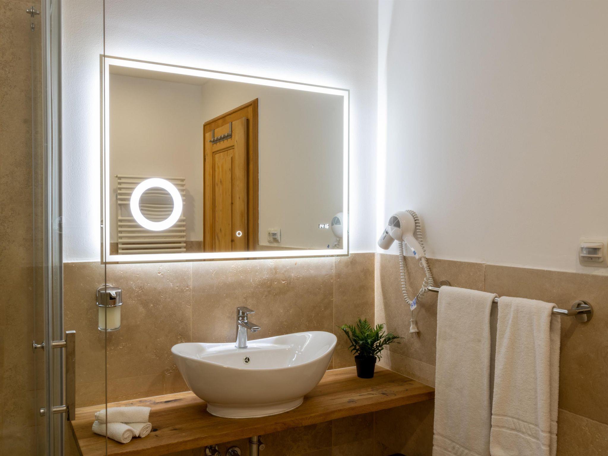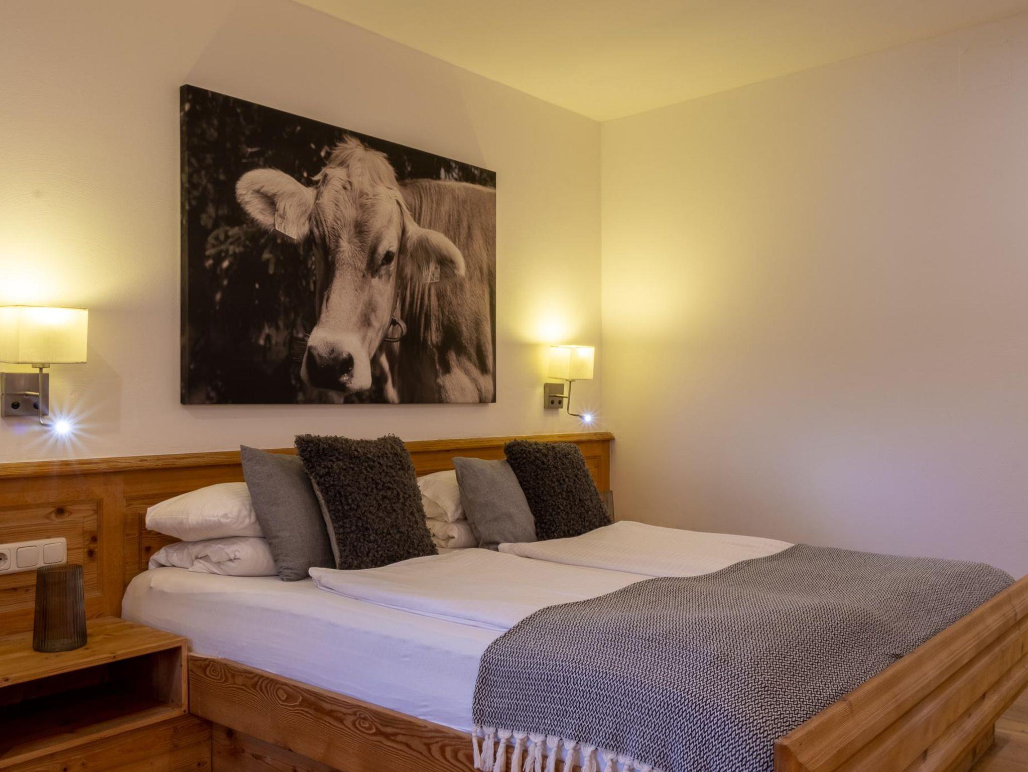 Die Family Suite bietet auf 36 m² Platz für bis zu 3 Personen und vereint Komfort mit einem naturnahen Ambiente – ideal für Familien. Der moderne Wohn- und Schlafbereich verfügt über ein gemütliches Doppelbett und einem anliegenden Bereich mit Einzelbett. Eine voll ausgestattete Küche sowie ein modernes Bad mit Dusche sorgen für zusätzlichen Wohlfühlfaktor. Der sonnige Südbalkon eröffnet einen traumhaften Blick auf die Berge. Bequem über den Aufzug erreichbar.