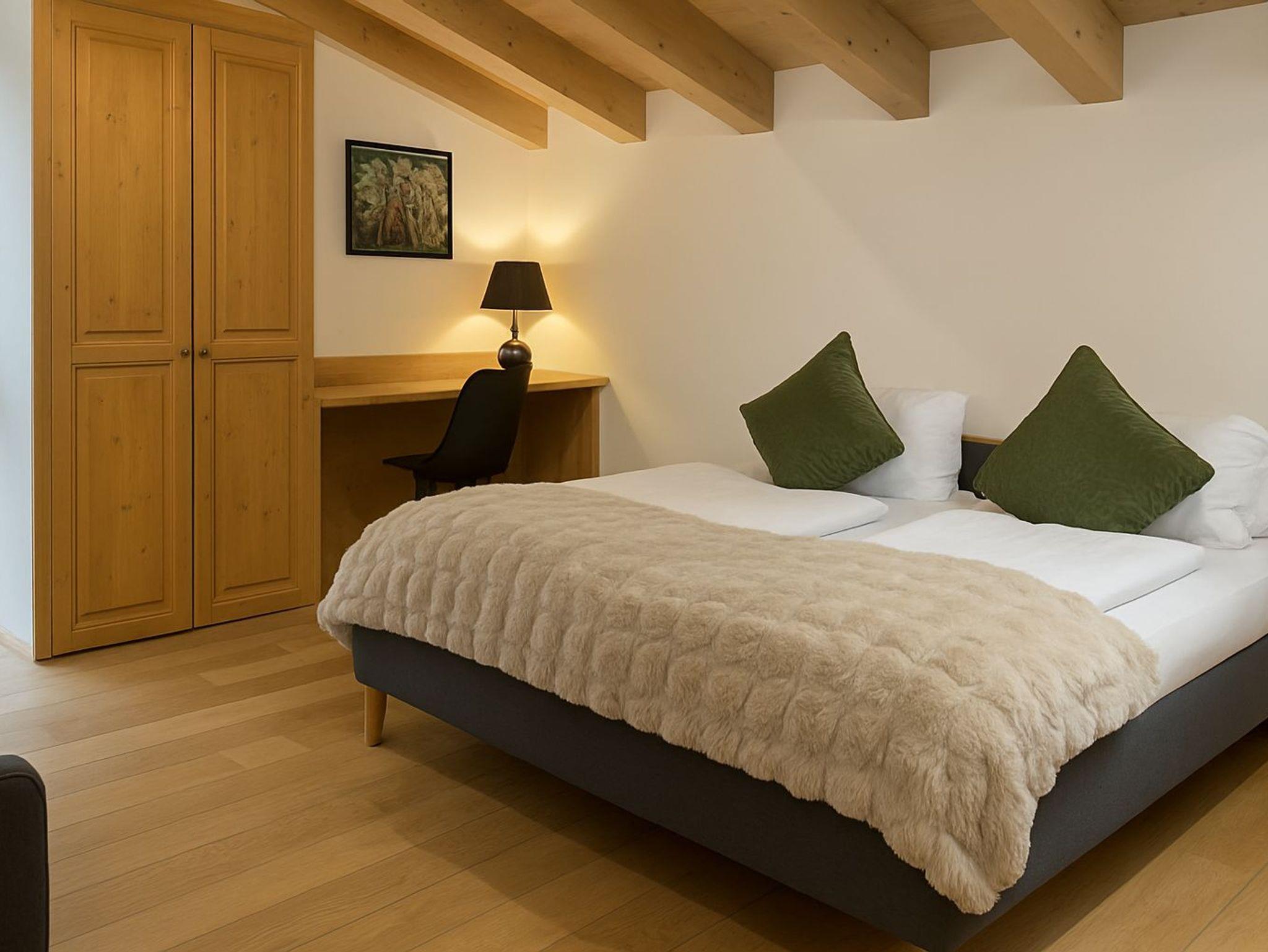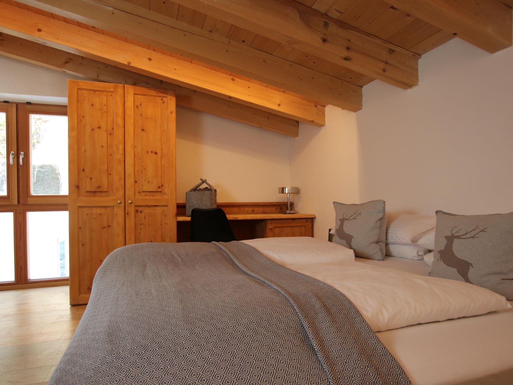 Dieses Apartment ist buchbar für bis zu 7 Personen und bietet auf 111 m² einen geräumigen Wohnbereich, drei Schlafzimmer mit jeweils einem Doppelbett, ein weiteres Schlafzimmer mit Einzelbett, eine voll ausgestattete Küche, zwei moderne Badezimmer mit Dusche, ein separates WC sowie einen Südbalkon mit wunderschönem Bergblick. Das Apartment befindet sich im 2. Stock und ist bequem über eine Treppe zugänglich.