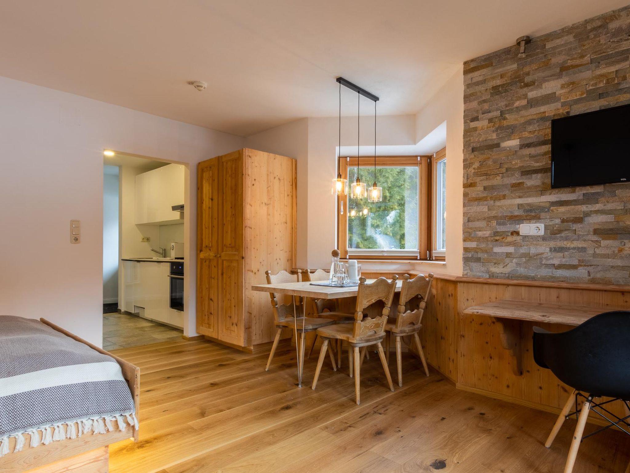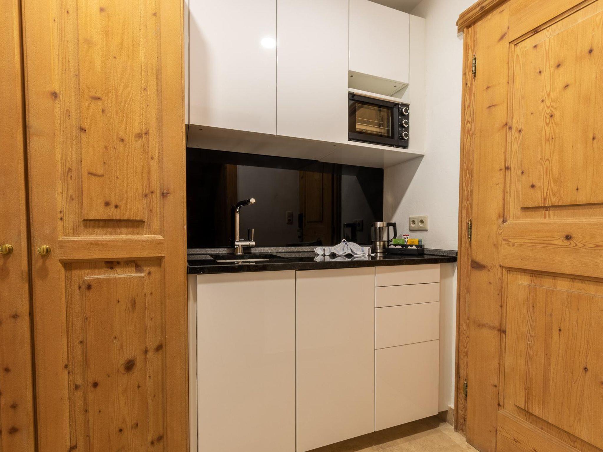 Dieses Apartment ist buchbar für bis zu 2 Personen und bietet auf 31 m² einen gemütlichen Wohn-/Schlafbereich mit einem Doppelbett, eine voll ausgestattete Kitchenette, ein modernes Badezimmer mit Dusche sowie einen Südbalkon mit herrlichem Bergblick. Das Apartment befindet sich im 3. Stock und ist bequem über einen Aufzug erreichbar.