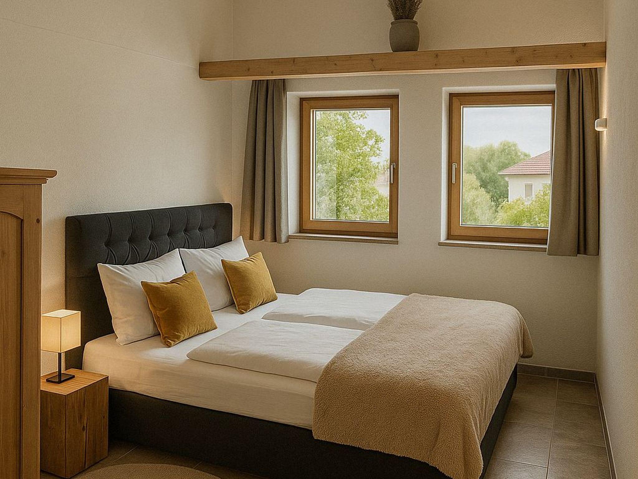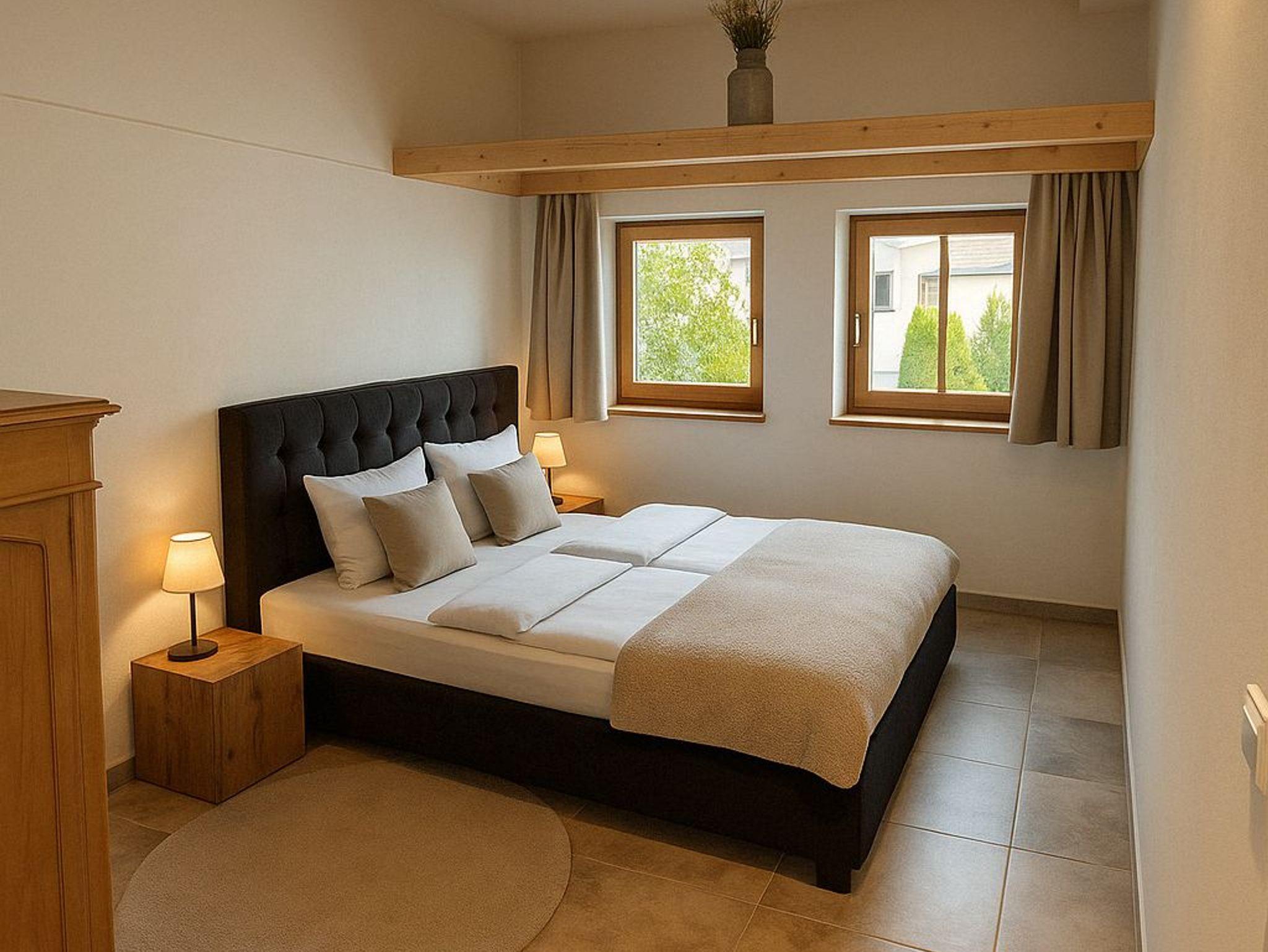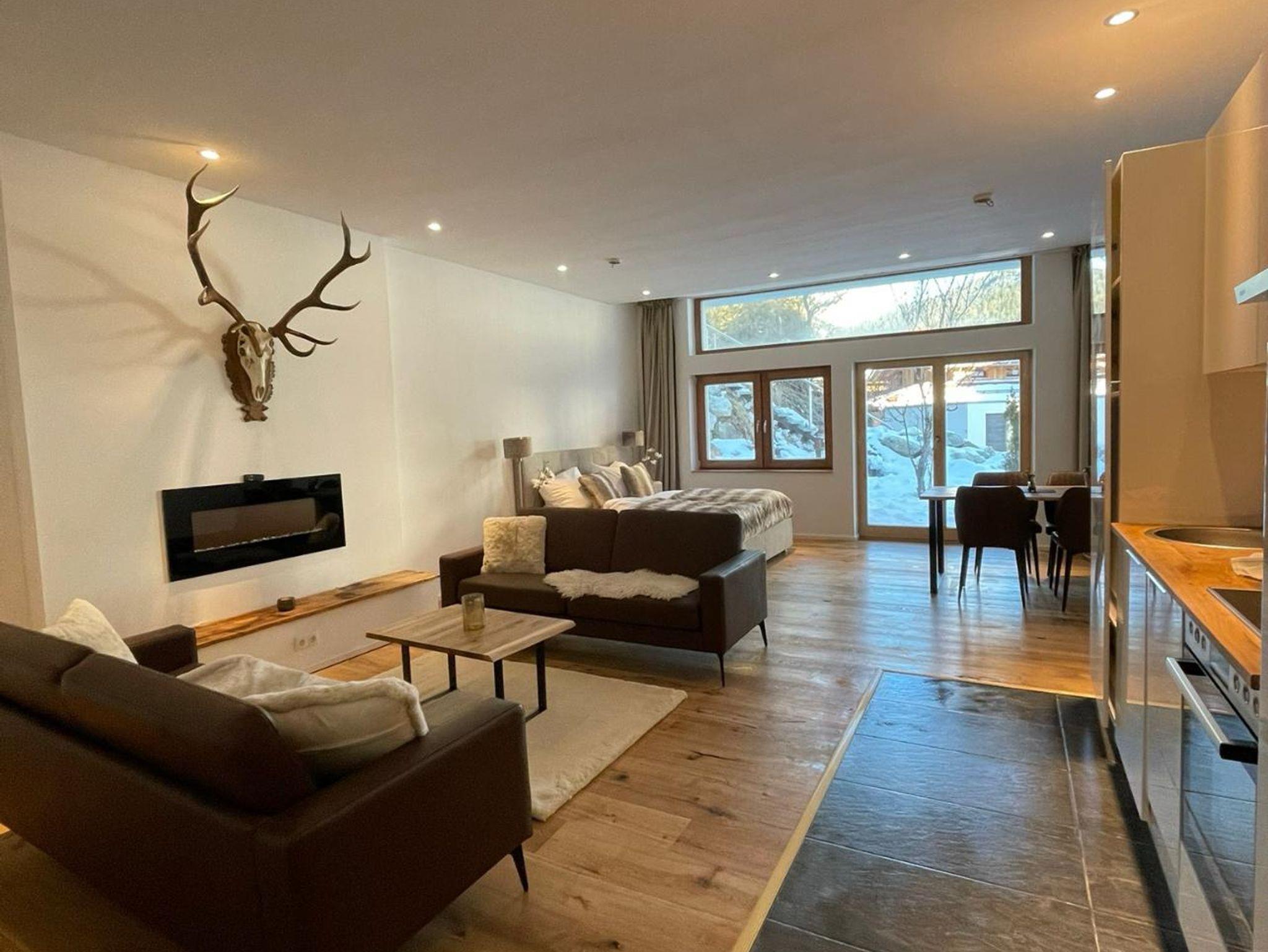 Dieses Apartment bietet Platz für bis zu 2 Personen auf 66 m². Der komfortable Wohnbereich lädt zum Entspannen ein. Zusätzlich gibt es ein offenes Schlafzimmer (ohne Tür) mit 2 Einzelbetten. Die voll ausgestattete Küche bietet alle Annehmlichkeiten. Das moderne Badezimmer verfügt über Dusche und Badewanne. Die Terrasse mit Garten bietet einen herrlichen Bergblick. Das Apartment liegt im Erdgeschoss und ist über einen separaten Eingang zugänglich.