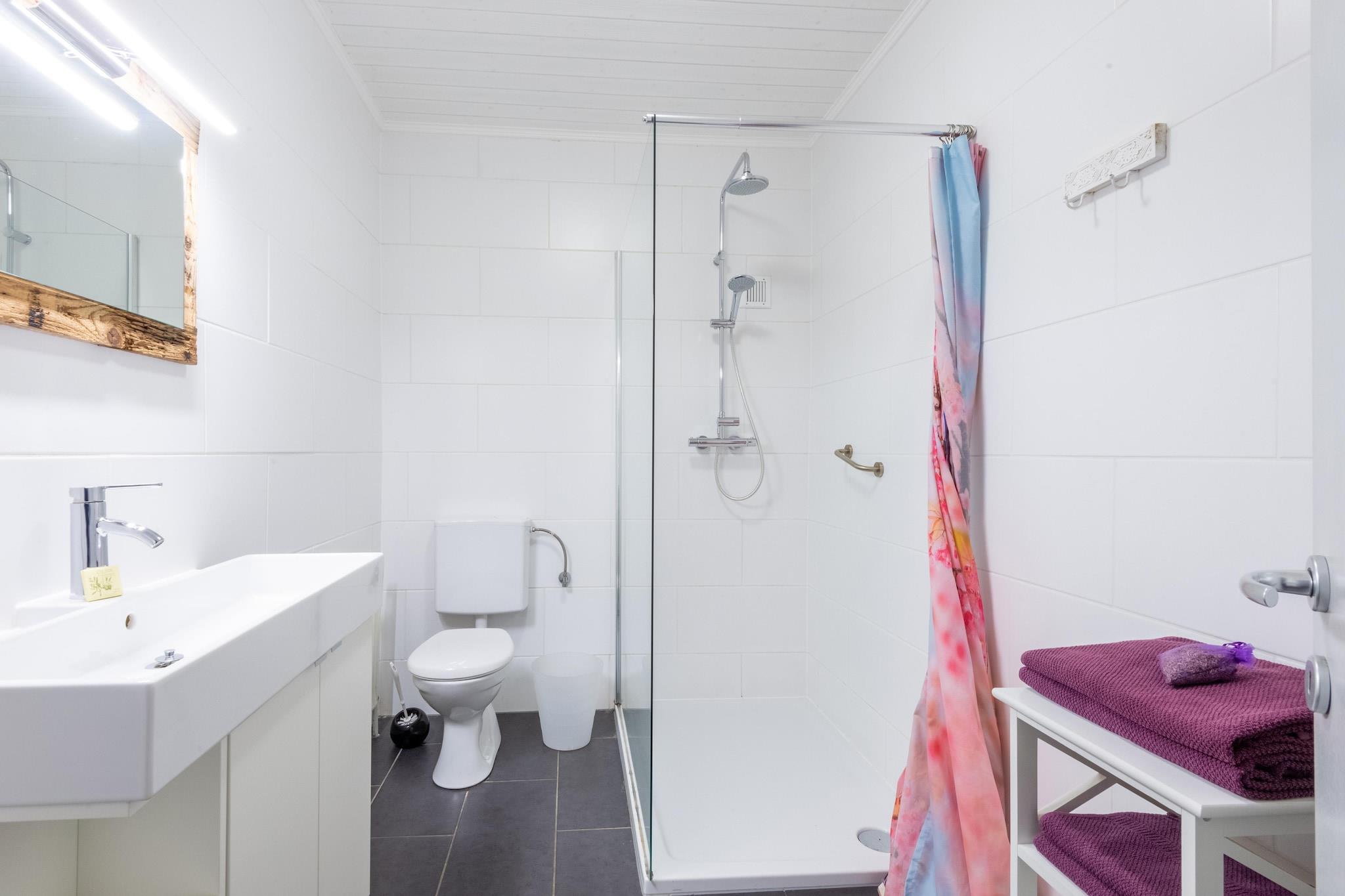 Stueetage: (Køkken(kogeplade, elkedel, brødrister, kaffemaskine(kaffepude), ovn, mikrobølgeovn, opvaskemaskine ), stue / spisestue(Fjernsyn), soveværelse(dobbeltseng), soveværelse(dobbeltseng), badeværelse(bruser, håndvask, toilet), sauna(deles med andre gæster, betalt)(infrared sauna(paid))) balkon eller terrasse, have, havemøbler, parkering