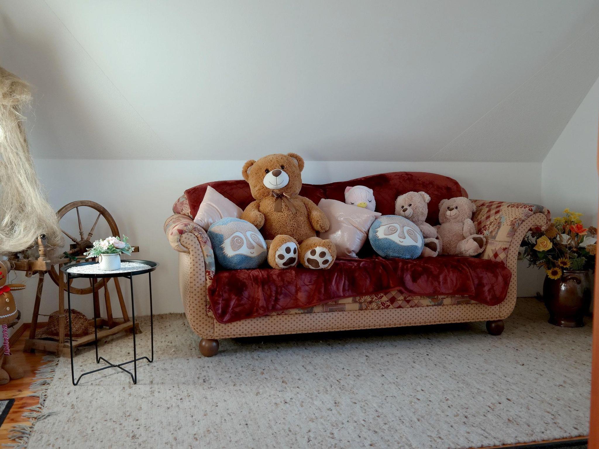 Die Wohnung nimmt den Raum der alten Rauchstube und der Labn, ein typischer Hausflur, ein und bietet eine große Stube mit Jogltisch und einem ausziehbaren Sofa, eine Küche mit Speisetisch und Eckbank, ein Schlafzimmer mit Doppelbett, ein Schlafzimmer mit Einzelbett, ein großes Bad mit Dusche und Badewanne und ein getrenntes WC.