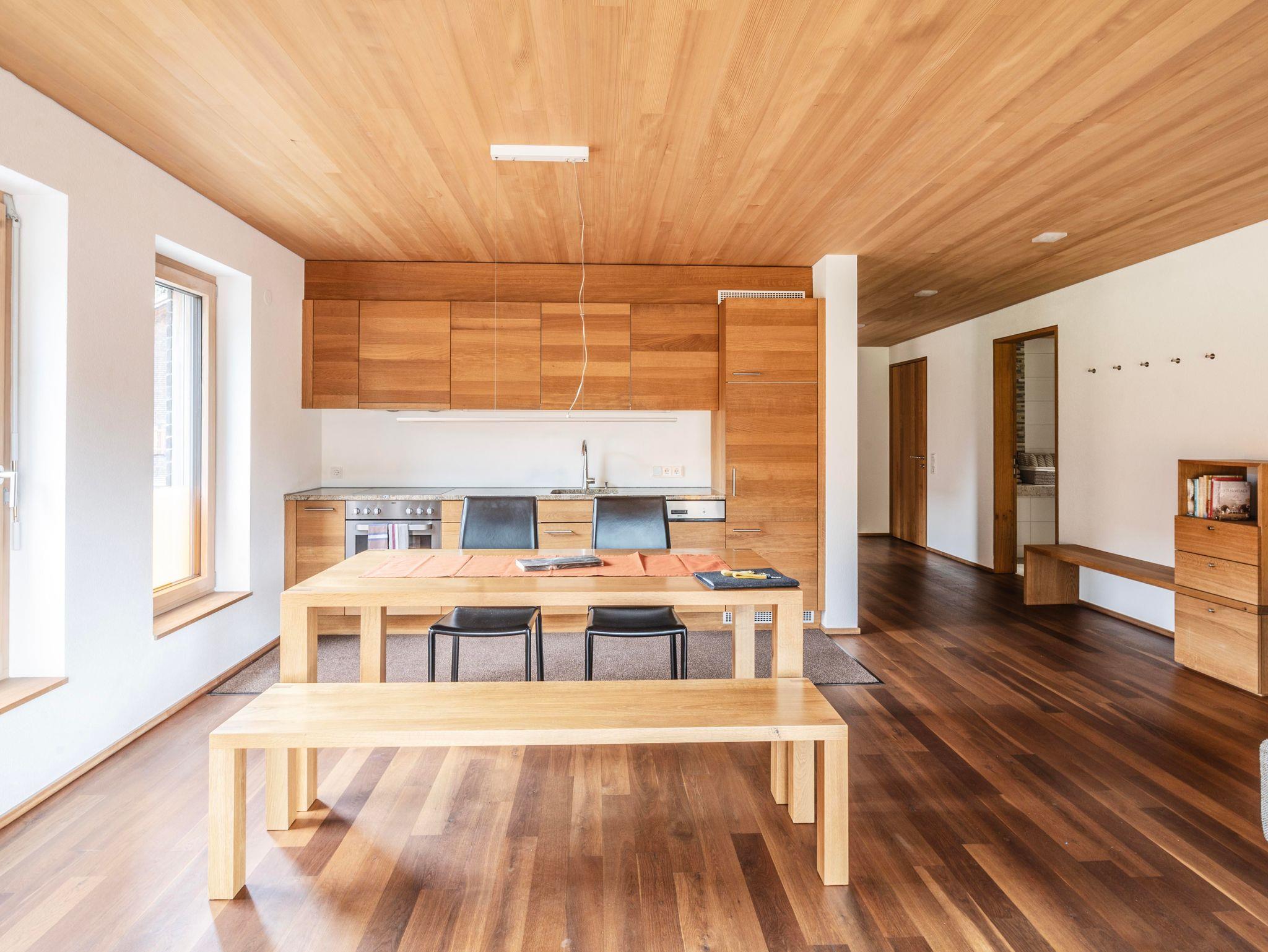 Wohnzimmer mit Couch und Essbereich - Küchenzeile mit Kühlschrank, Elektroherd, Geschirrspüler und Backrohr - 2 Schlafzimmer mit Doppelbetten - Badezimmer mit Dusche und Badewanne - Separates WC - Terrasse - TV - Kostenloser WLAN Zugang - Bettwäsche frisch für Sie bezogen - Handtücher - Geschirrtücher - komplettes Geschirr und Gläser sind vorhanden - Waschmaschine - Trockner - Fahrradabstellplatz - Schiaufbewahrungsraum - Liegestühle - pro Ferienwohnung ist ein Parkplatz vorhanden - Benützung von hauseigener Sauna, Schwimmbad und Whirlpool - Haustiere nicht erlaubt – Nichtraucherwohnung