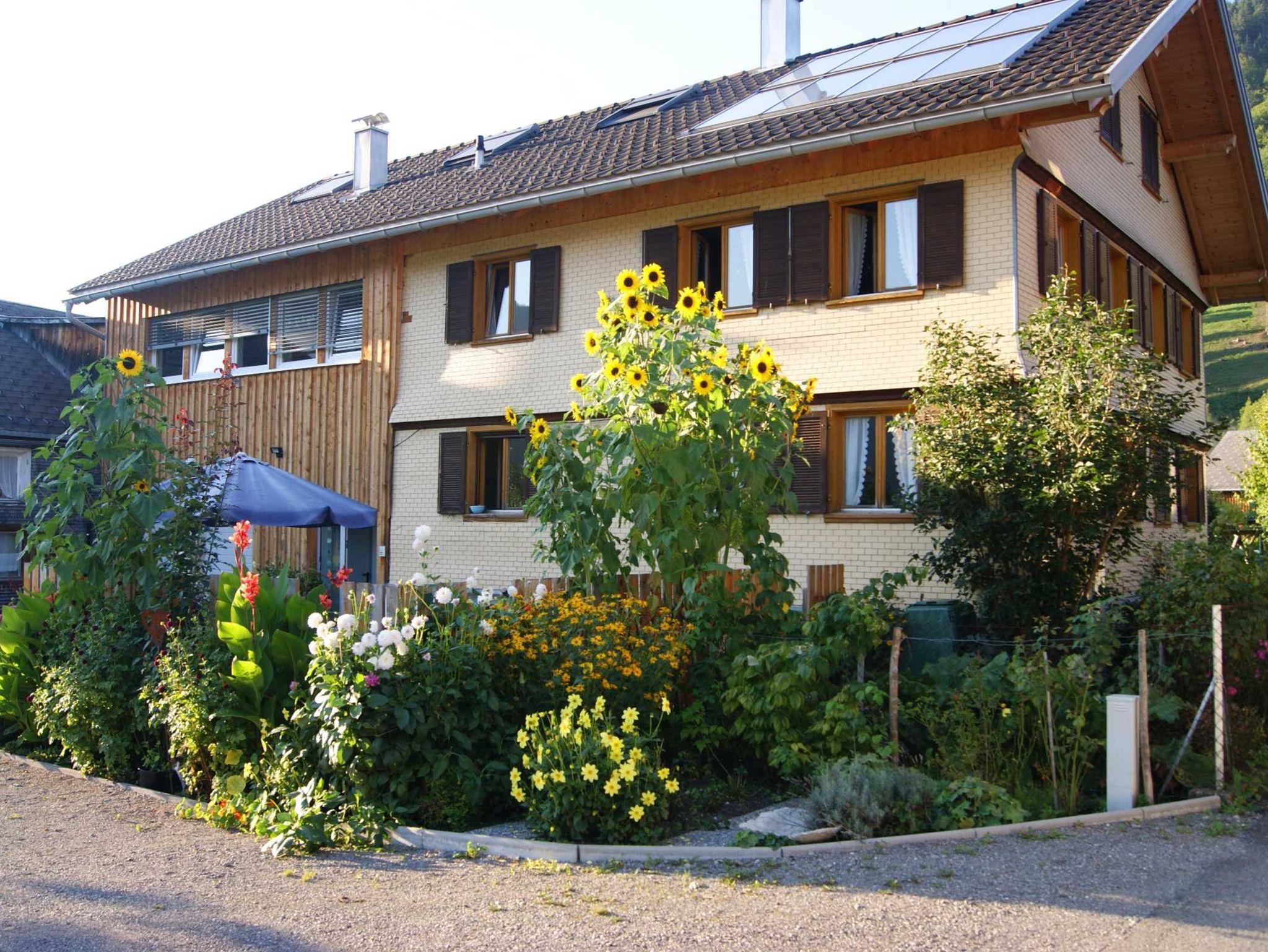 Die neue, liebevoll eingerichtete Wohnung liegt im 1. Stock und bietet einen wunderbaren Ausblick auf die Kanisfluh. Auf unserer neu gestalteten und großzügigen Terrasse lässt sich die Sonne hervorragend genießen. Das zweite Schlafzimmer befindet sich im Dachgeschoss mit extra WC.