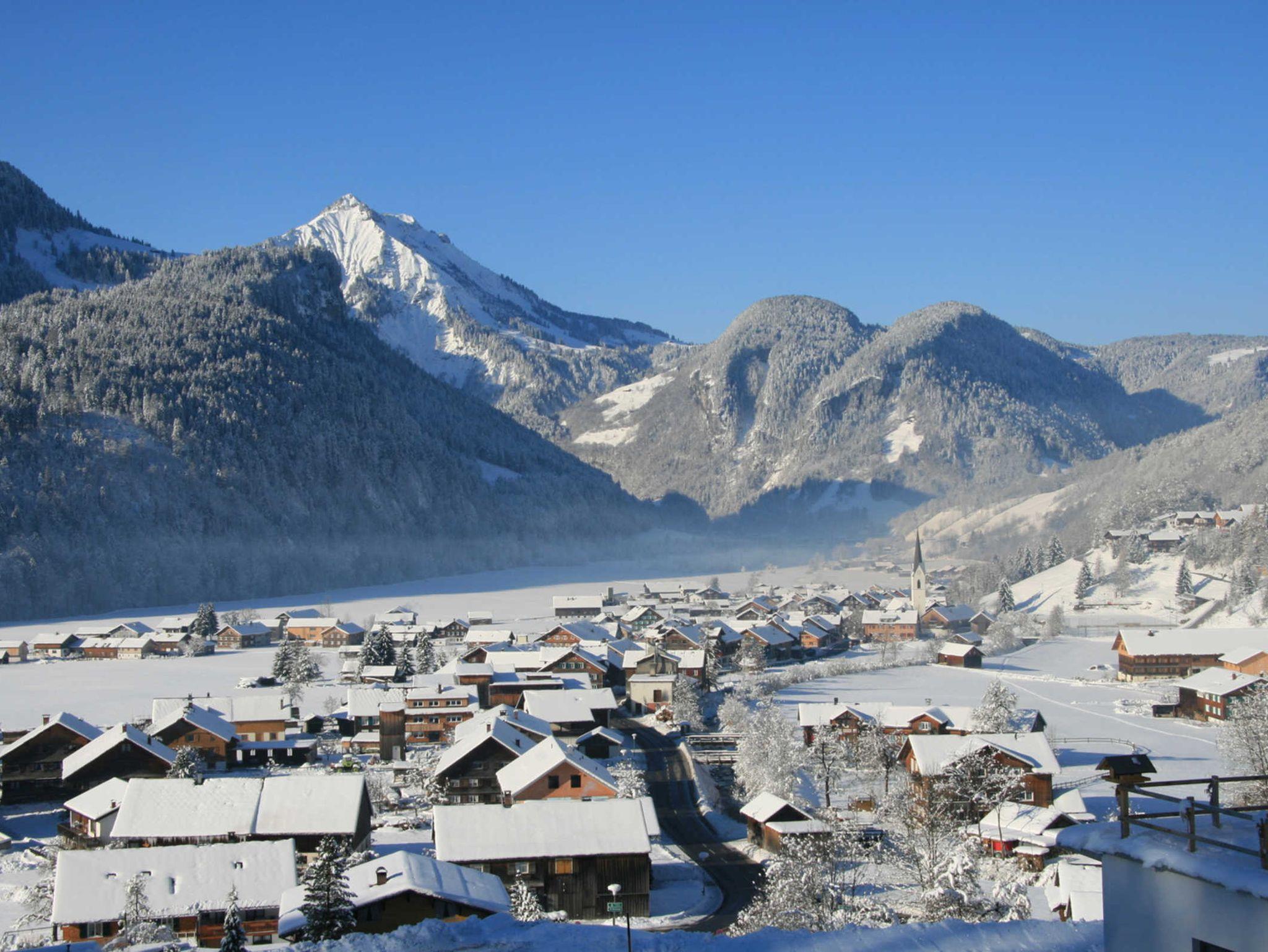 Unser Haus liegt in sonniger, ruhiger Lage nahe dem Dorfzentrum von Bizau mit wunderschönem Ausblick.