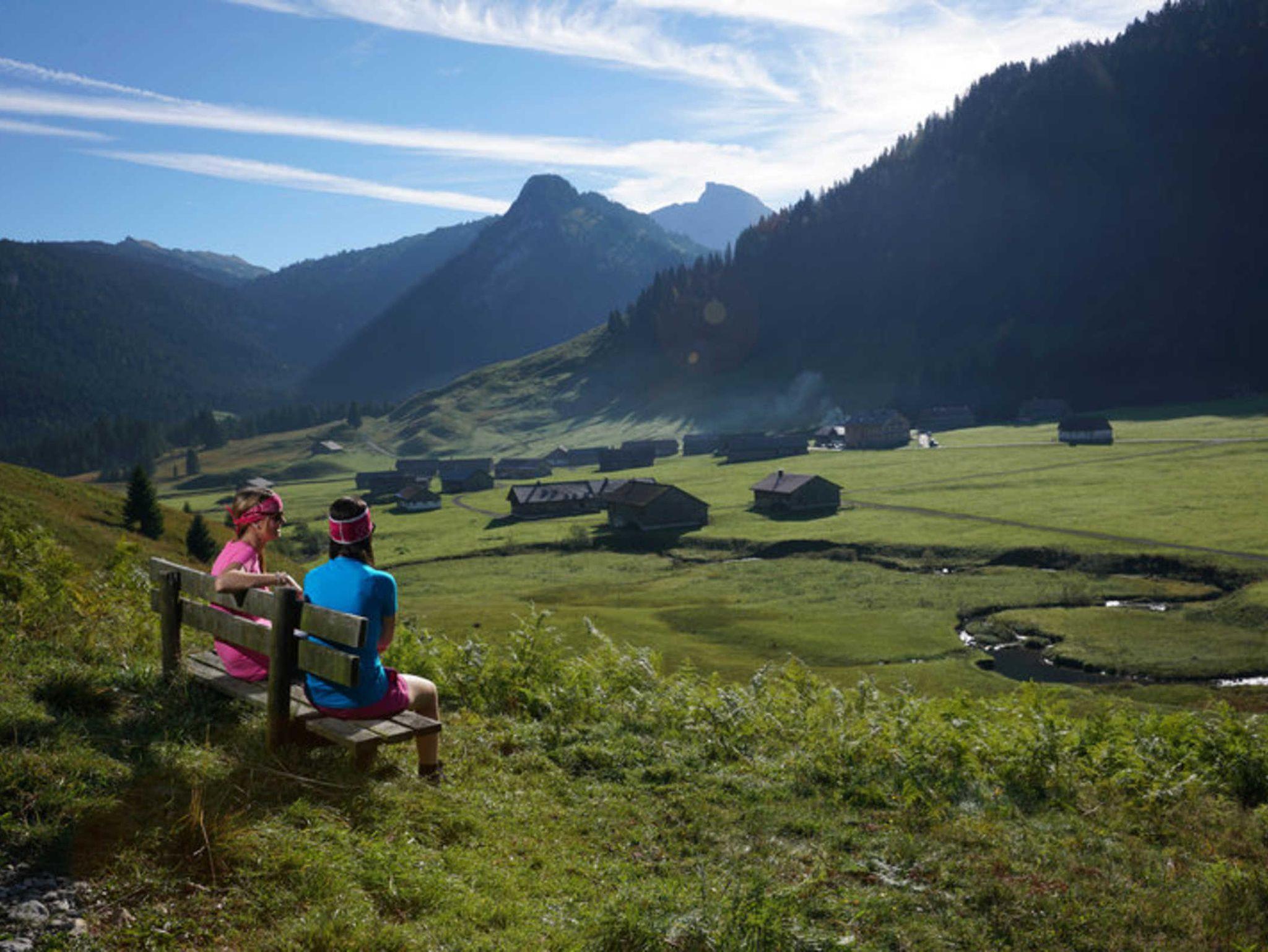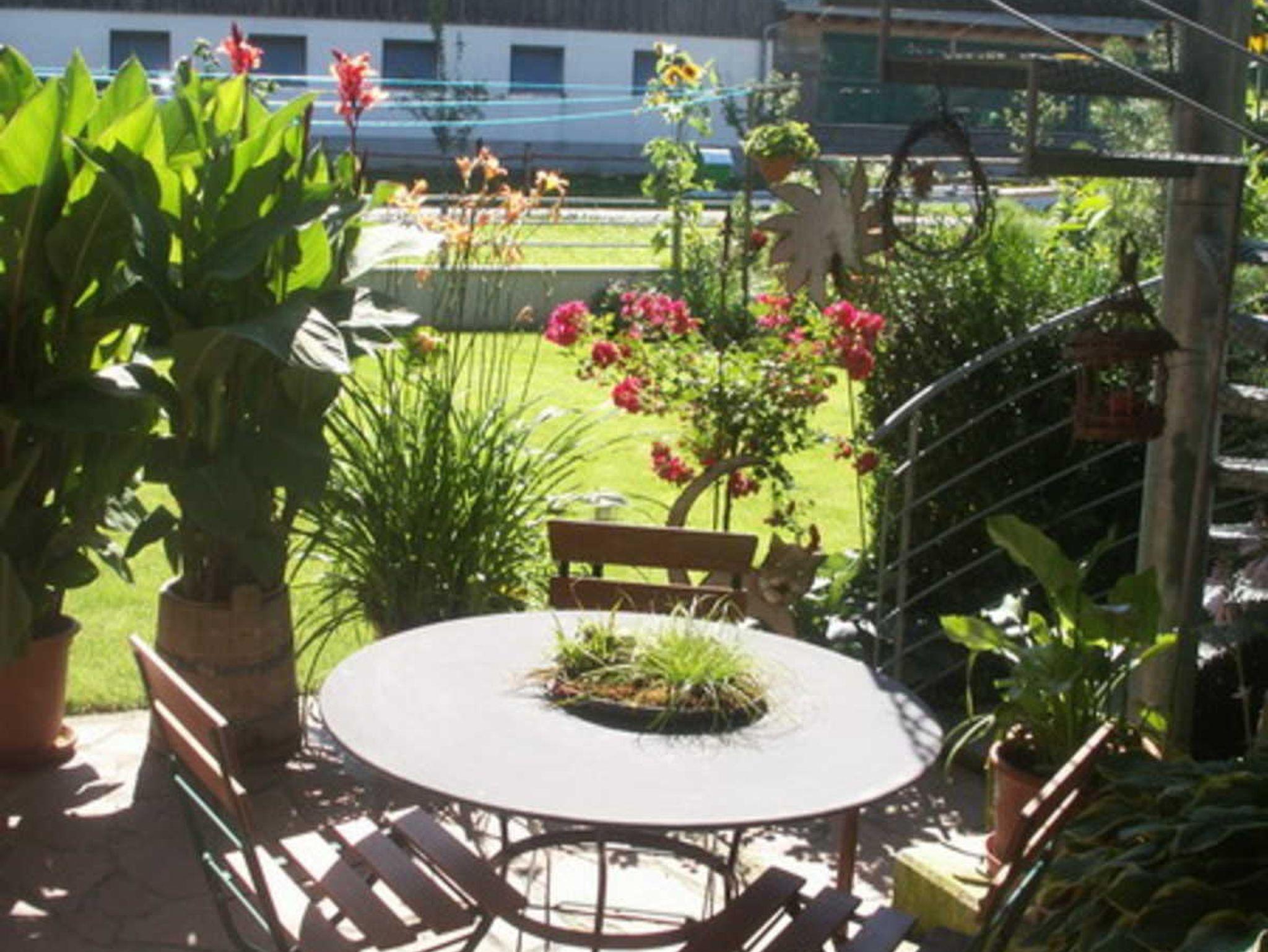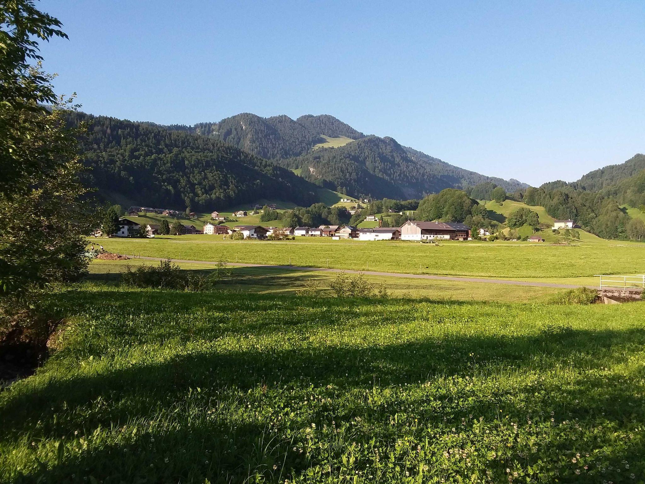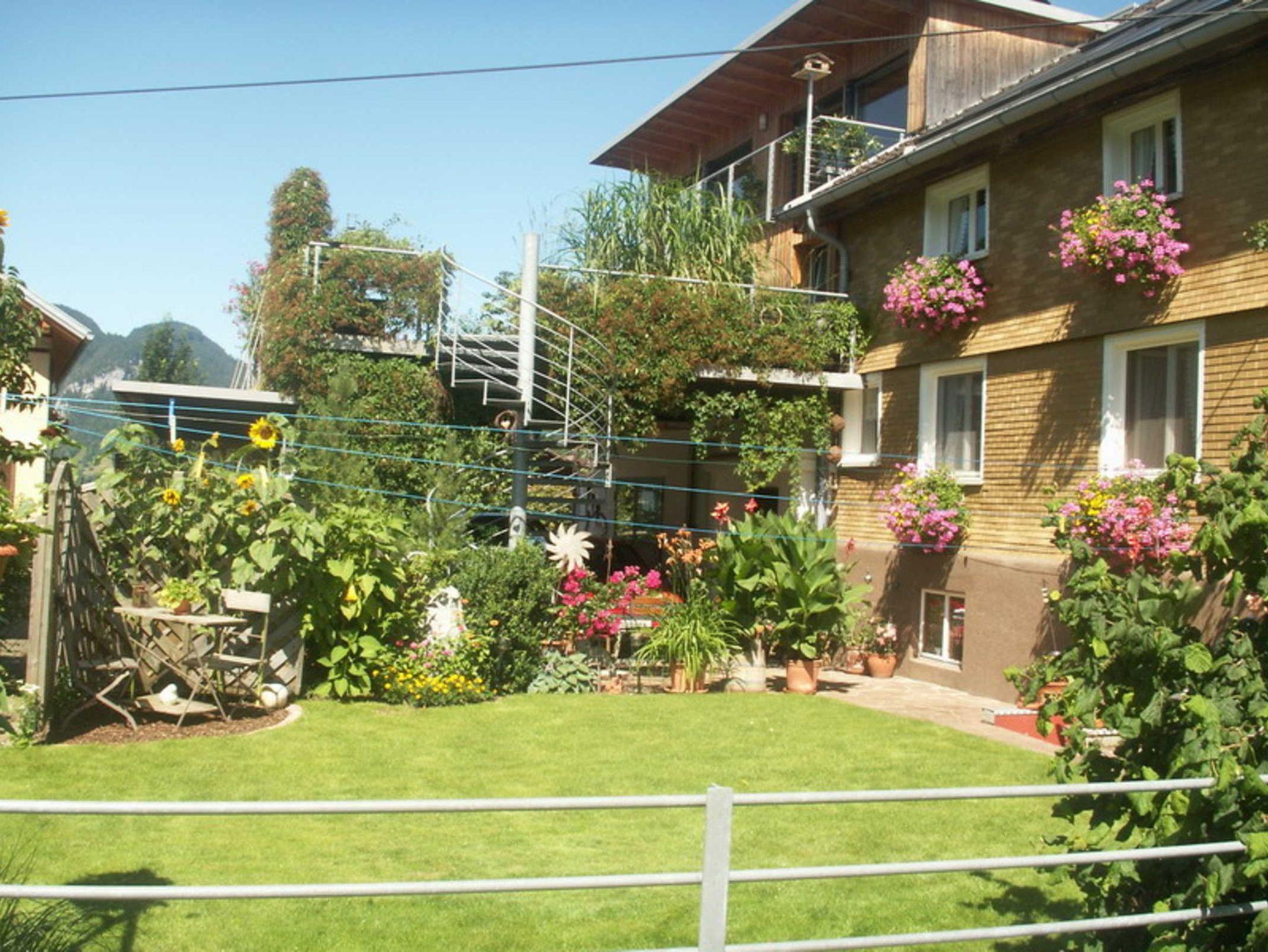 Die ruhige Lage unseres Hauses - mit Blick zum Hirschberg und zur Kanisfluh - ist in Zentrumsnähe und ohne Durchzugsverkehr. Für Ihr Auto steht ein Carport zur Verfügung. In unserem Garten mit sommerlichem Flair steht eine Sitzecke für Sie bereit.