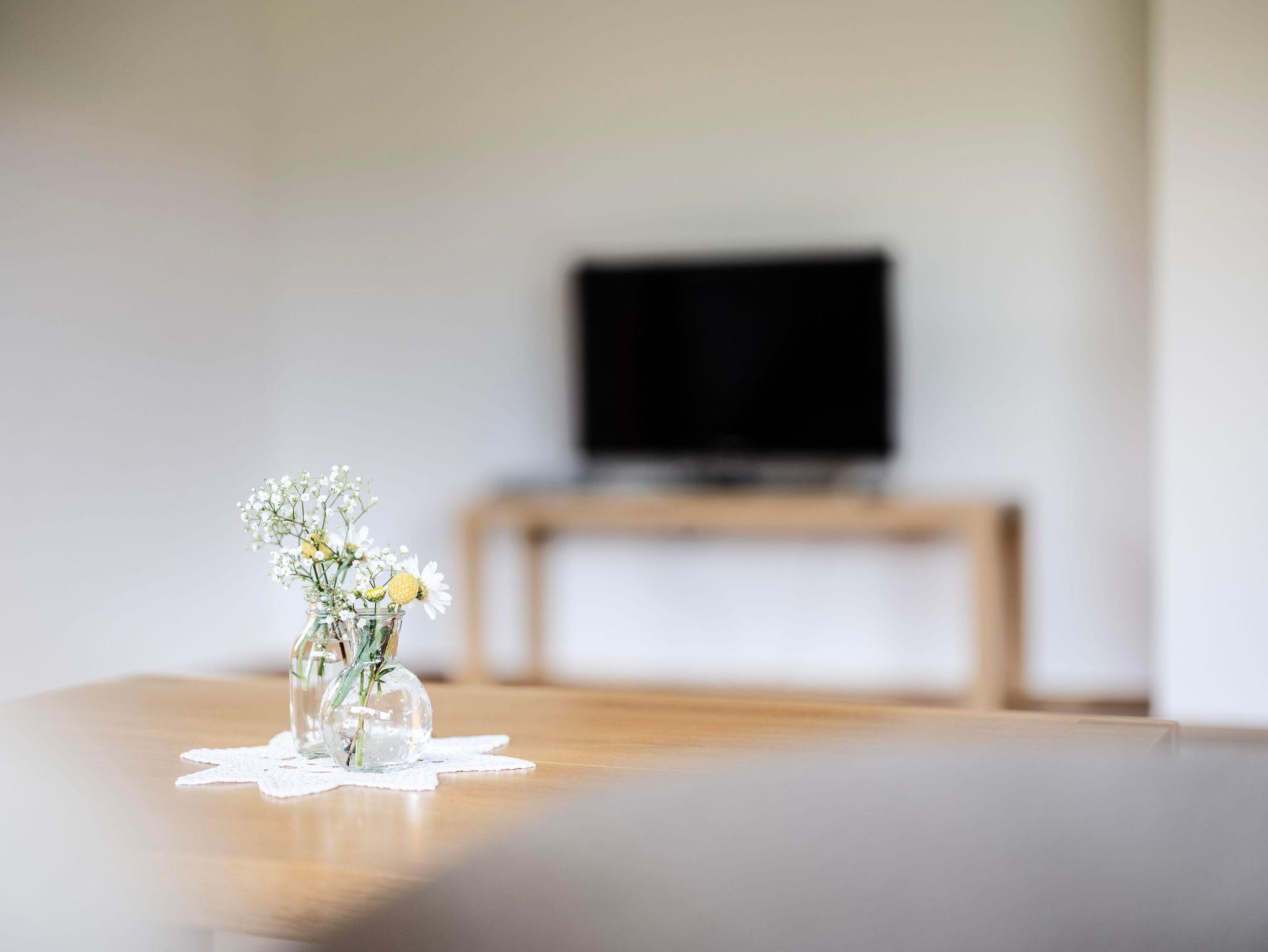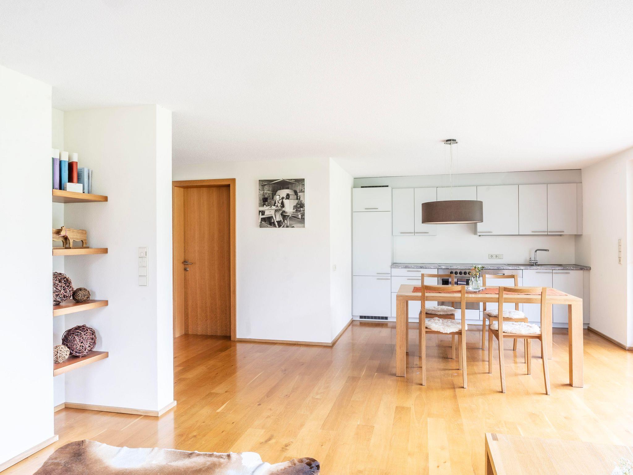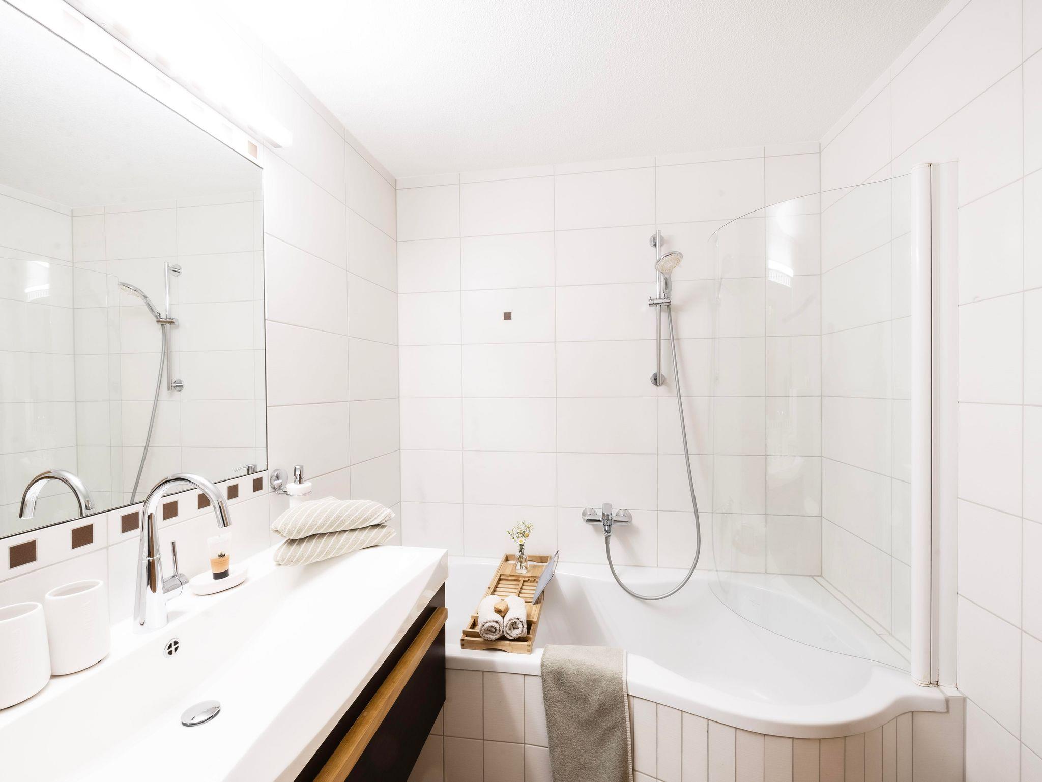 Wohnzimmer mit Couch und Essbereich - Küchenzeile mit Kühlschrank, Elektroherd, Geschirrspüler und Backrohr - 2 Schlafzimmer mit Doppelbetten - Badezimmer mit Dusche und Badewanne - Separates WC - Terrasse - TV - Kostenloser WLAN Zugang - Bettwäsche frisch für Sie bezogen - Handtücher - Geschirrtücher - komplettes Geschirr und Gläser sind vorhanden - Waschmaschine - Trockner - Fahrradabstellplatz - Schiaufbewahrungsraum - Liegestühle - pro Ferienwohnung ist ein Parkplatz vorhanden - Benützung von hauseigener Sauna, Schwimmbad und Whirlpool - Haustiere nicht erlaubt – Nichtraucherwohnung