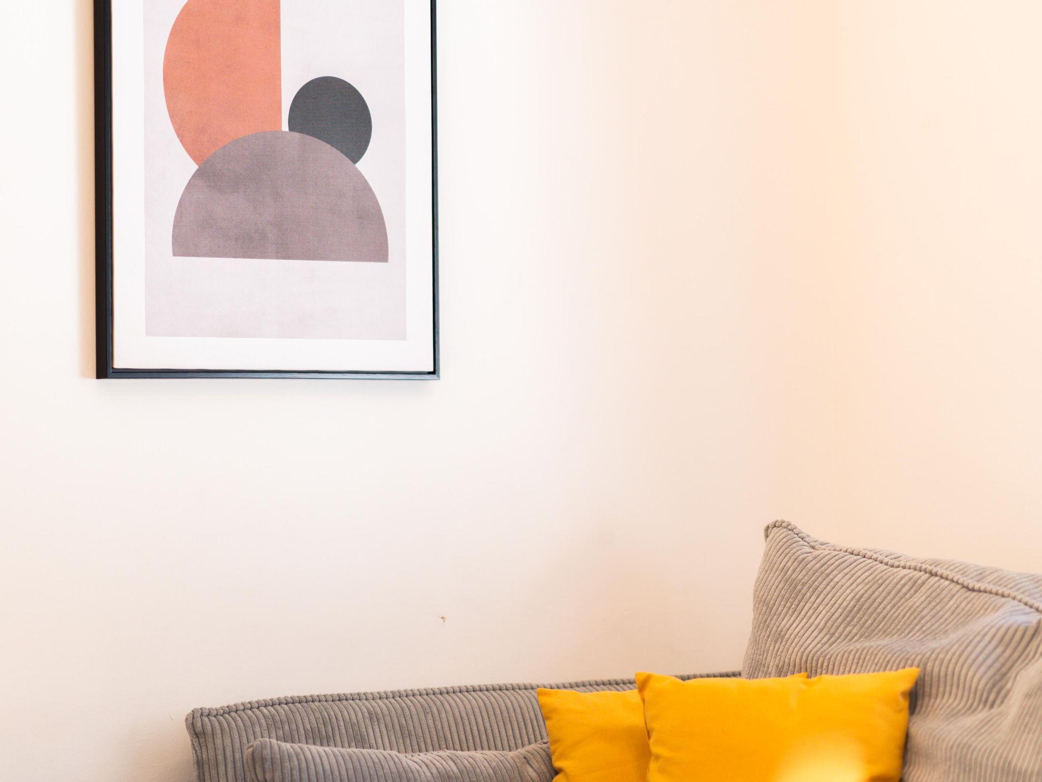 Das Sofa kann im Wohnzimmer aufgeklappt werden, um Platz für eine sechste Person zu schaffen!
