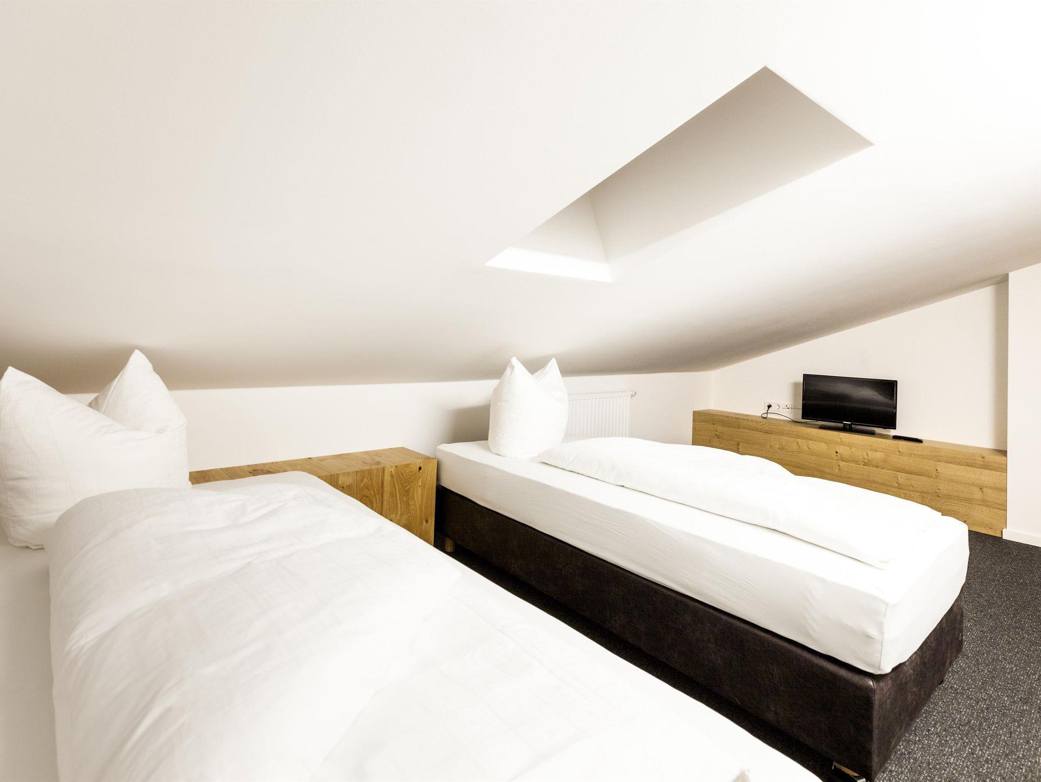 Hier ist der Name Programm:Unser etwas kleineres Appartement mit einem Doppelschlafzimmer und einem Kinderschlafzimmer, mit Dachschräge, ist ideal für Familien. Auch hier steht eine großzügige Wohnküche im Zentrum des Geschehens und bietet viel Platz für gemeinsames Speisen oder vergnügte Spielabende. Falls doch mehr Ruhe gewünscht wird, kann sich jeder in sein eigenes Zimmer zurückziehen.