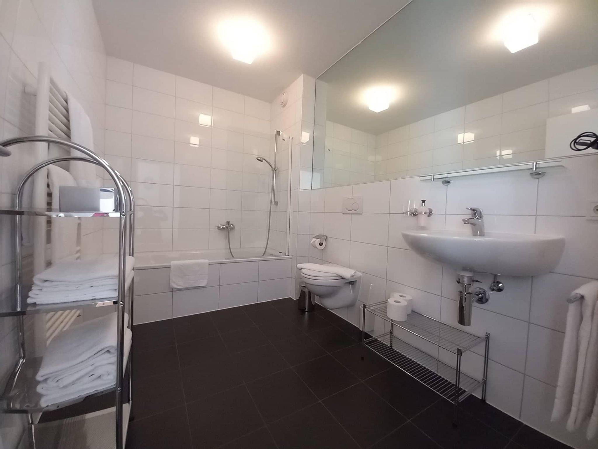 Als Manko wurde von uns die Art der Beleuchtung befunden und dass kein Haltegriff bei der Badewanne vorhanden war.