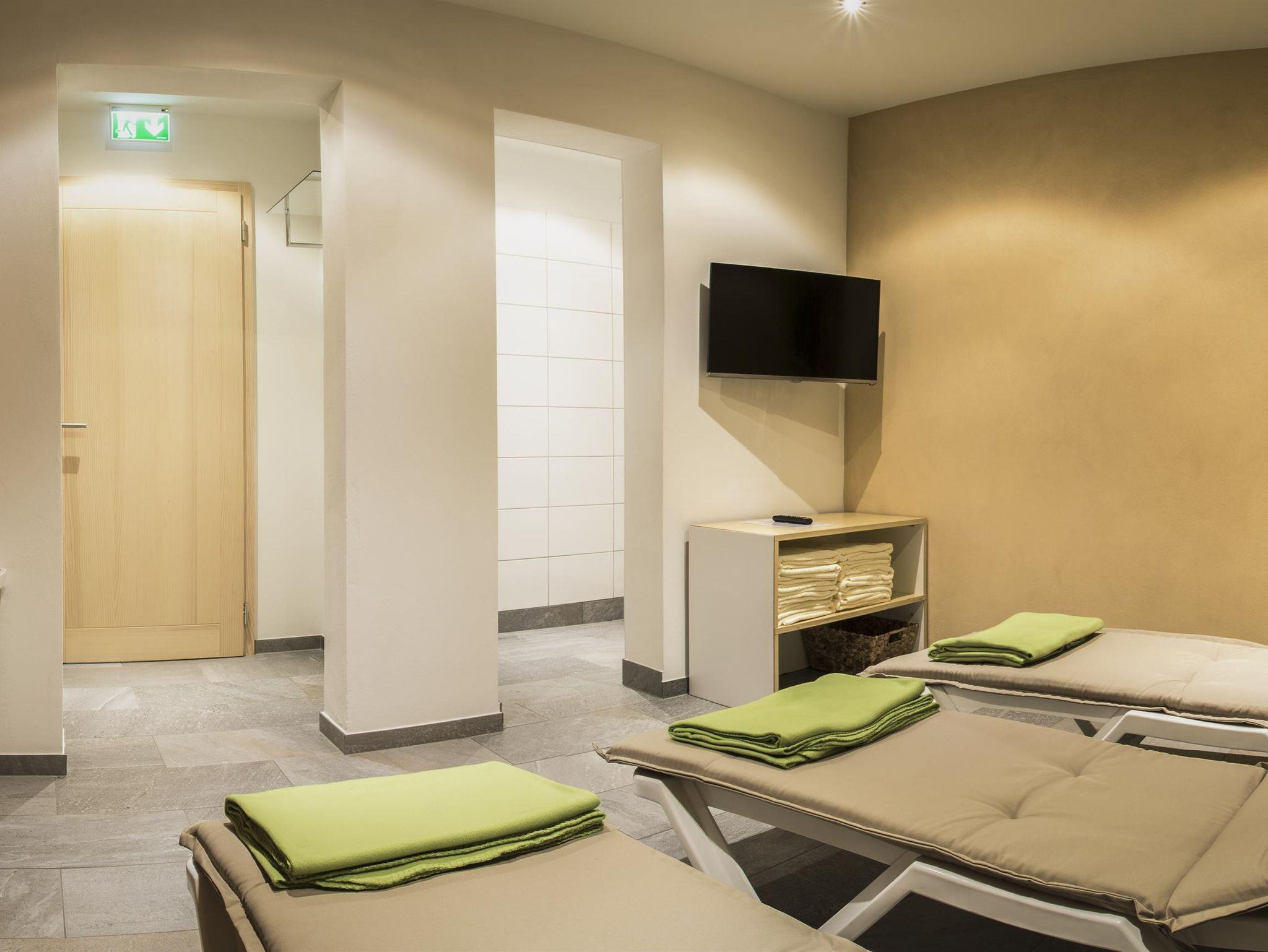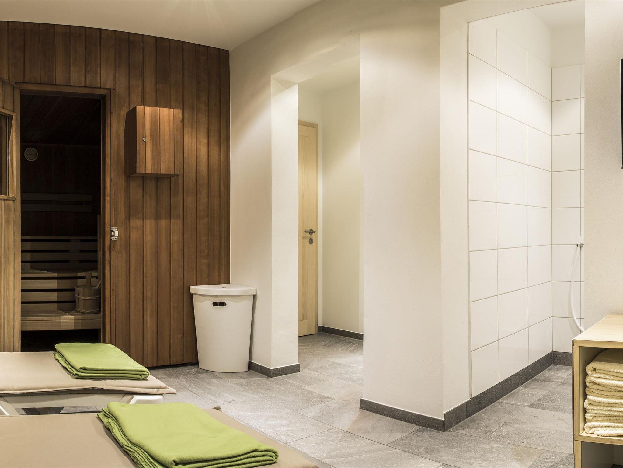 Eine Sauna mit Wellnessdusche und Ruheraum befindet sich nur wenige Meter von Ihrem Appartement entfernt. Die gemütliche Terrasse lädt zudem zum Verweilen und Sonnenbaden ein.