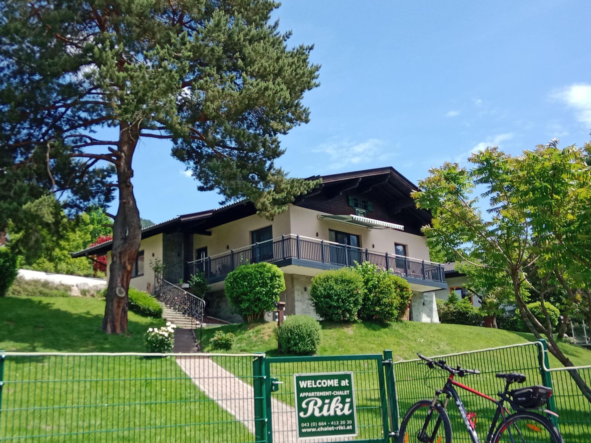 Bruck 7 km from Zell am See: Guests receive a 10% discount on their restaurant bill when visiting the nearby Hotel Lukashansl. Cosy single-family house "Riki", 2 storeys, detached, surrounded by meadows. In the resort 400 m from the centre of Bruck, in a sunny position on a slope, 3 km from the lake. Private: large, well-kept garden 1'600 m2 (fenced), lawn for sunbathing. Garden furniture, barbecue. In the house: storage room for bicycles, storage room for skis, central heating system. Breakfast and half board possible. Storeroom available. Motor access to the grounds. Stepped path to the house. Parking (for 5 cars) on the premises. Shop 400 m, supermarket 1 km, restaurant, bus stop 400 m, outdoor swimming pool 500 m, indoor swimming pool 6 km, swimming bay 3.5 km. Golf course (18 hole) 6 km, tennis 500 m, riding stable 800 m, gondola lift 4 km, skisport facilities 4 km, ski bus stop 400 m, ski school 4 km, sled run 500 m, cross country ski track 600 m, ice rink 6 km, children's playground 400 m. Well-known ski regions can easily be reached: Schmittenhöhe 9 km, Maiskogel Kaprun Kitzsteinhorn 10 km, Kitzsteinhorn (Okt.-Juni) 10 km. Well-known lakes can easily be reached: Zeller See 3 km. Please note: suitable for families.