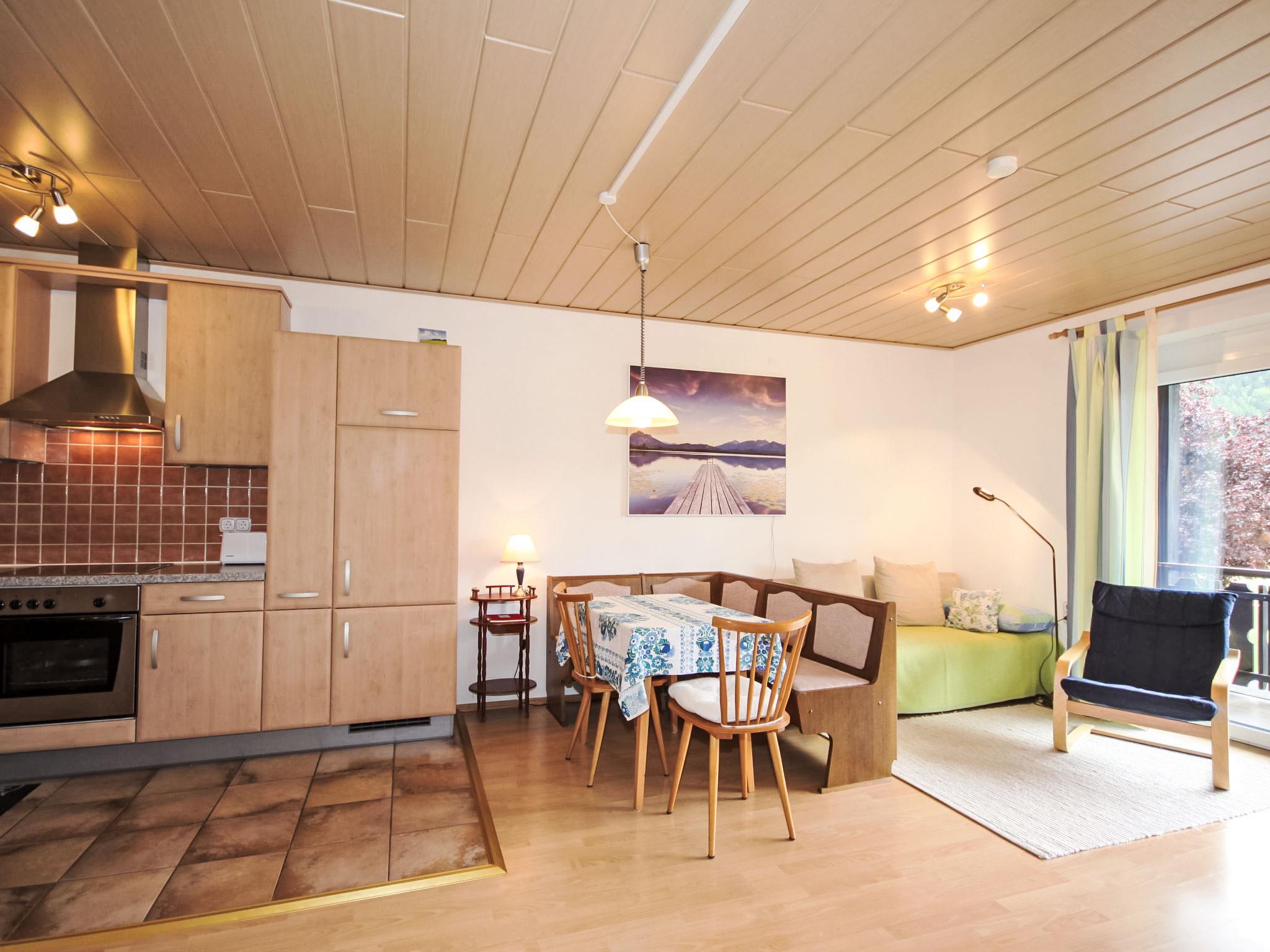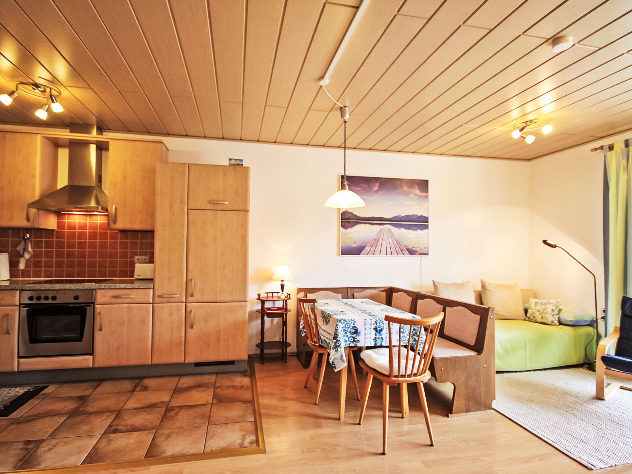 "Annemarie", 3-room apartment 59 m2 on 1st floor. Object suitable for 4 adults. Spacious, cosy furnishings: entrance hall with separate WC. Living/dining room with satellite TV (flat screen), CD-player, hi-fi system and DVD. Exit to the balcony. 1 double bedroom. 1 room with 2 beds (90 cm, length 190 cm). Open kitchen (oven, dishwasher, 4 ceramic glass hob hotplates, freezer). Shower. Large balcony 38 m2, large patio. Balcony furniture, box-room. Beautiful view of the lake and the mountains. Facilities: washing machine. Internet (WiFi, free). Parking. Please note: suitable for families. Non-smokers only. Smoke alarm.